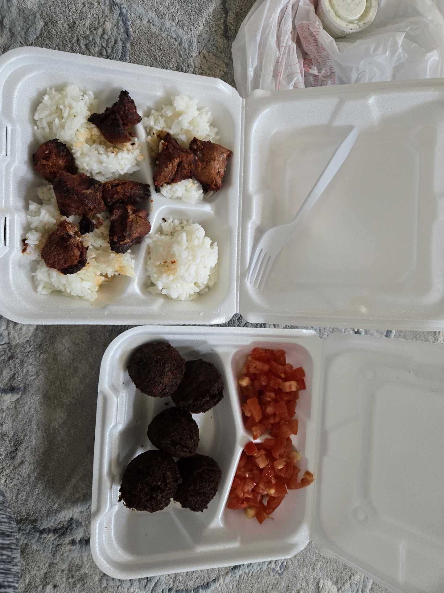 Read moreFood: I had the musakka guvec with white rice, bulgur, pickled red cabbage, pita bread, and tzatziki sauce. I also got falafel, hummus, baba ganoush, and walnut baklava. Disappointed they didn’t have the kanafeh or kazandibi desserts available! Will come back next time for them.