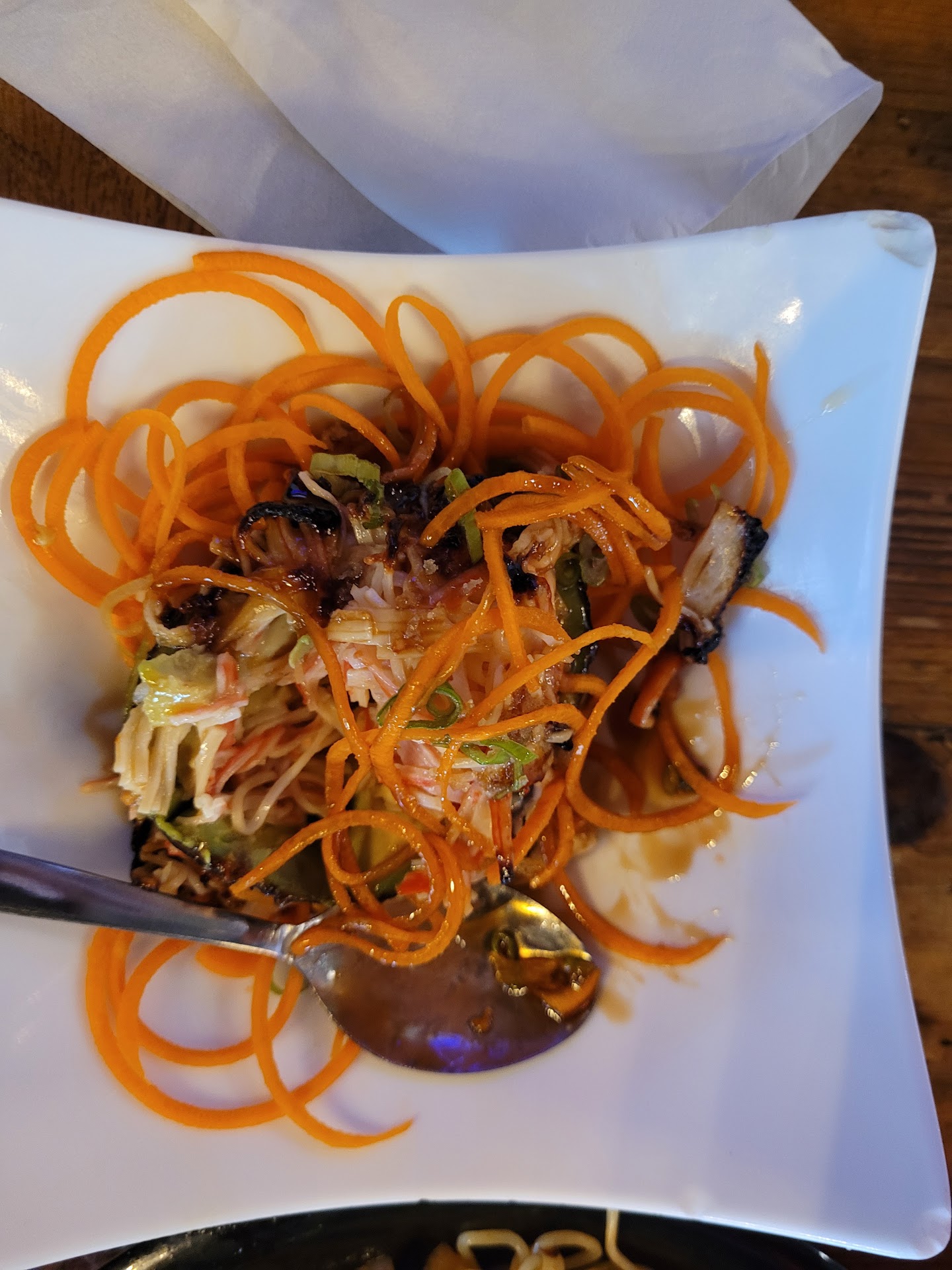 I have ordered the yakisoba and a spicy tuna avocado roll and my friend ordered their ramen.