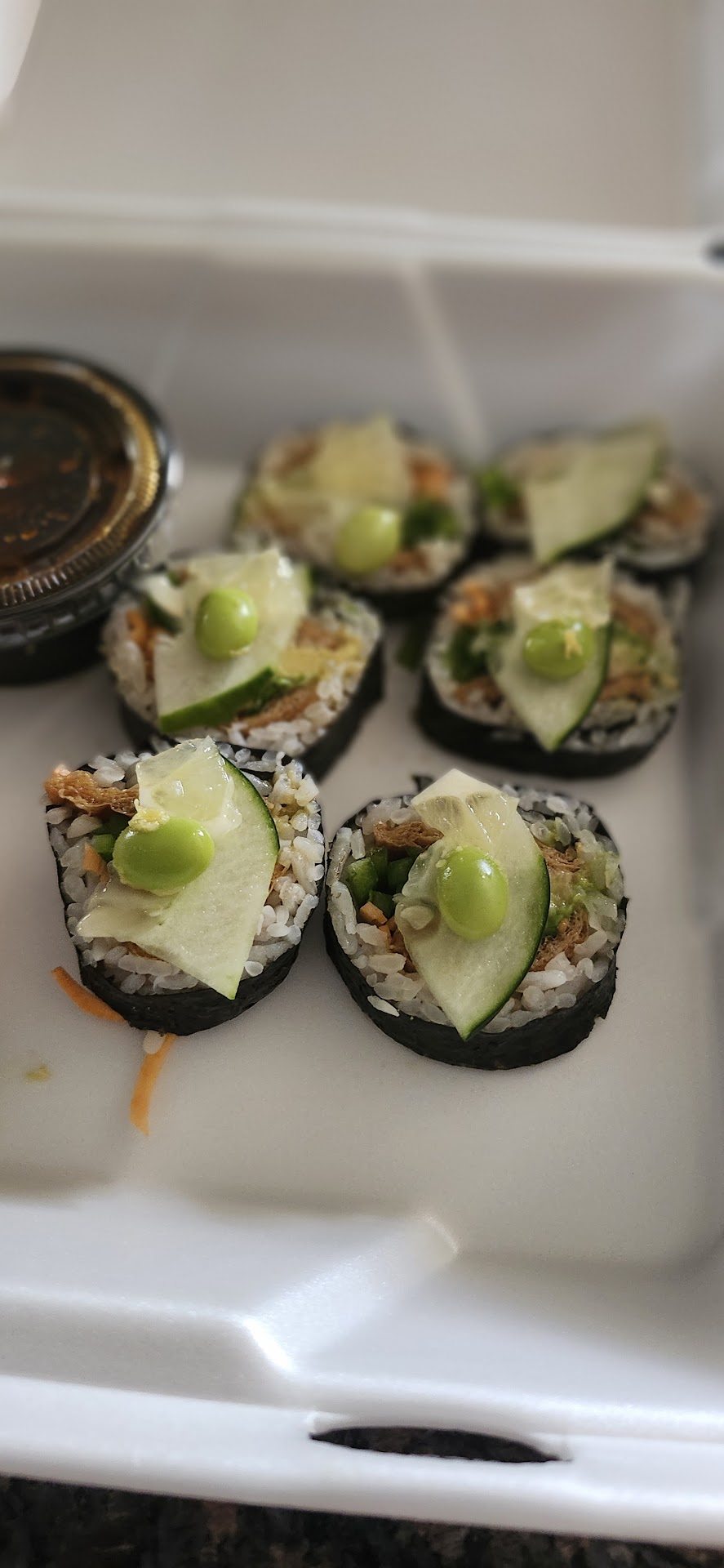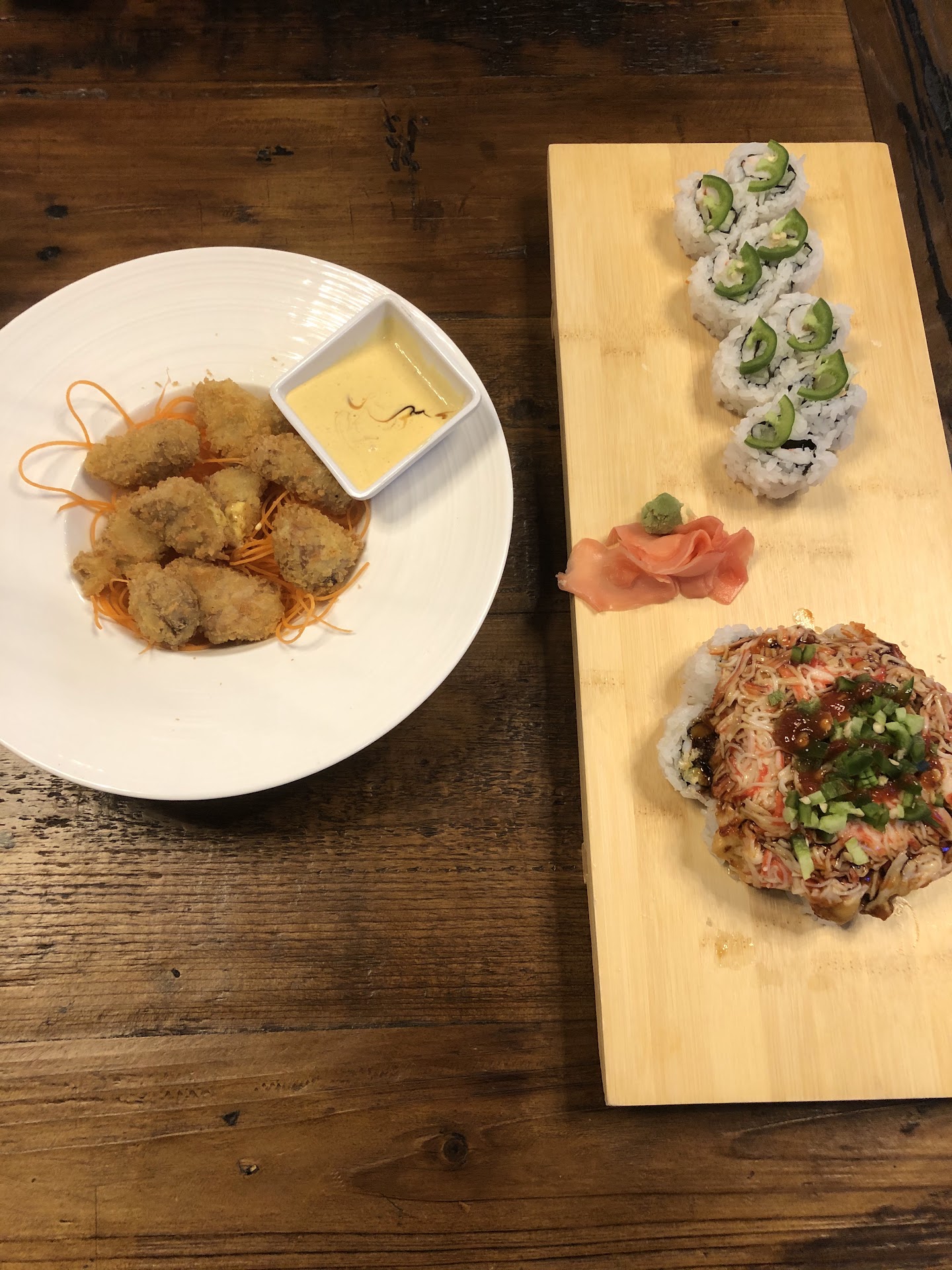 Just Ok...I eat sushi regularly around fort walton and destin, I've been wanting to try this place but was kind of disappointed. Upon arrival we were told we could sit at the bar which is full service or a table which is self service. The bar has 4 seats and there was someone in one of the middle seats with her dirty napkins spread around so there really wasn't room to sit there. So we found a table. We went to the counter to look at the menu on the wall, after a few minutes we decided we should look on the website for the menu because it was going to take us a some time to decide what we wanted. We went back to our table, went to the website only to discover you have to register as though you are making a Togo order to see the menu. I went to the order counter to ask for a menu and was told they are "over there on that table", at the hostess station, so I went to host myself and get a menu. We ordered 4 sushi rolls, a rice plate, some gyoza and squid salad. $120 before tipping. This is typical of what we spend when we go out for sushi. The gyoza was good. After waiting about 20 mins for our sushi rolls, they arrived, still no squid salad. I asked about it and got it about 5 minutes later. The Cucumbers were delicious, the squid was ok, but very flavorful cucumbers. The sushi rolls were disappointing. We eat regularly at okinawa, soi bistro and domo Cafe and the quality of the sushi rolls for the price is much better at all of those places. Typically when you get a sushi roll that is rice with a little something in the middle but nothing on top, they are less than $10, not here, those "basic" rolls are $15ish here. Most rolls that are that much at other places have a nice slice of fish or something on top. Not here. Also the rolls you get are not 8 or 10 pieces, they are definitely smaller rolls than you get at other restaurants, in quanity, not in rice, theres plenty or rice in them.... So the value for the money here is not there. The quality of the fish was good but the quantity was lacking. Also the rice plate was supposed to be fried rice. There was no egg in it, only peas, carrots and corn???...they should definitely omit the corn, the yellow of the corn doesnt replace the yellow of the egg...my husband loves food and wouldnt even finish his rice. This place is okay but overpriced and lacking service. The staff were nice but their interactions were as limited as possible. Doubt I'll ever come back here again. It wasn't horrible but it wasn't great, it won't make it on the sushi restaurant rotation...