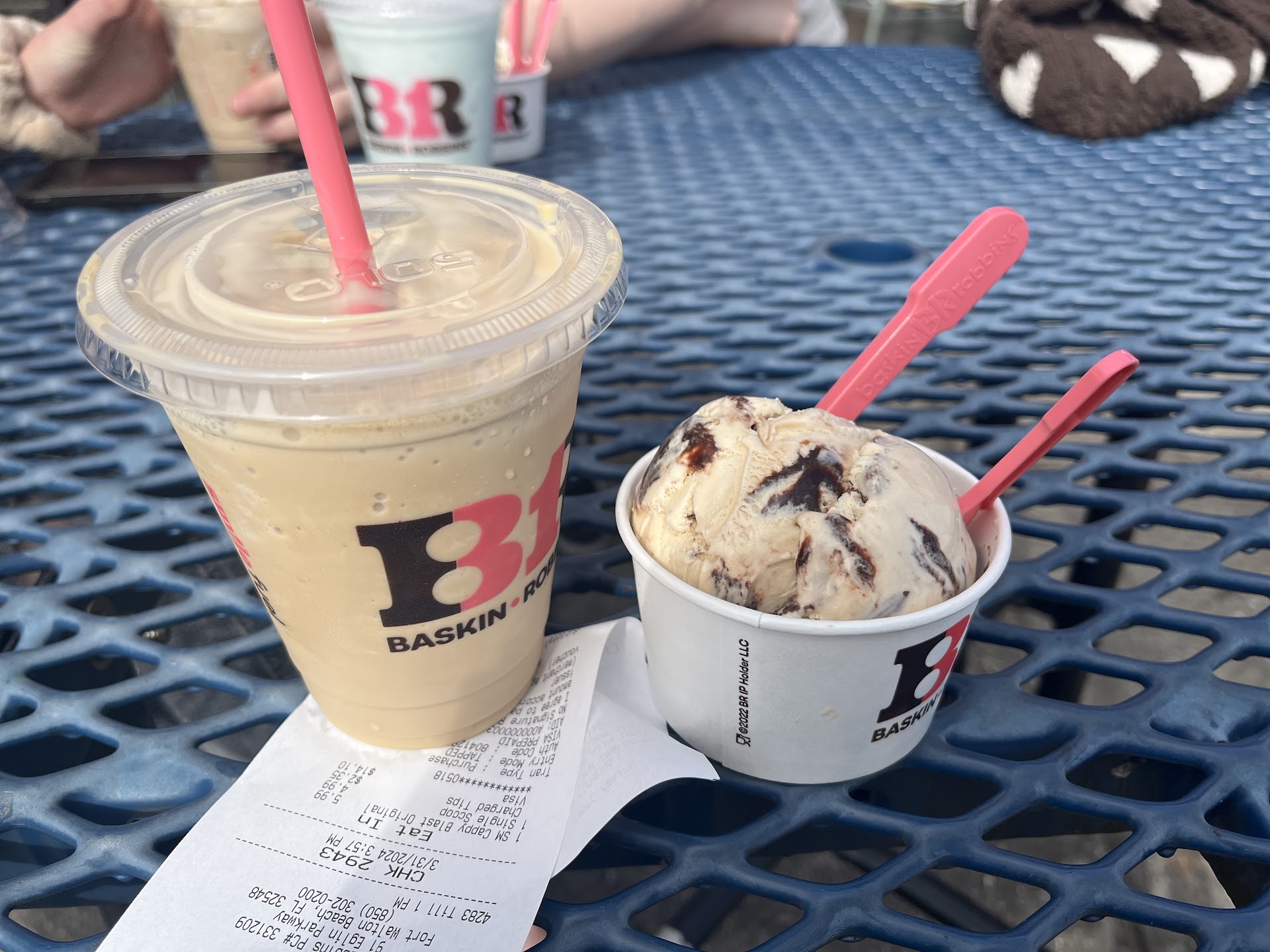 Read moreNot one smile the entire visit was bad it was like they felt like we were there annoying . In addition the restrooms are out of order tried to ask for a cup of water for our puppy while we were waiting forever for our ice cream and they charged us $1 for it and it came full of ice and was about 3 in tall not to mention that the ice cream which we ordered multiple different flavors all tasted freezer burnt and the Scoops are about the size of a very undersized tennis ball truth is it just sucked all the way around I was shocked because I've been eating Baskin-Robbins and going to their stores for ice cream since I was a kid I don't know if somebody else runs the company or the privately owned or what but the Eglin Parkway Baskin-Robbins owner should not own an ice cream shop which is supposed to be...