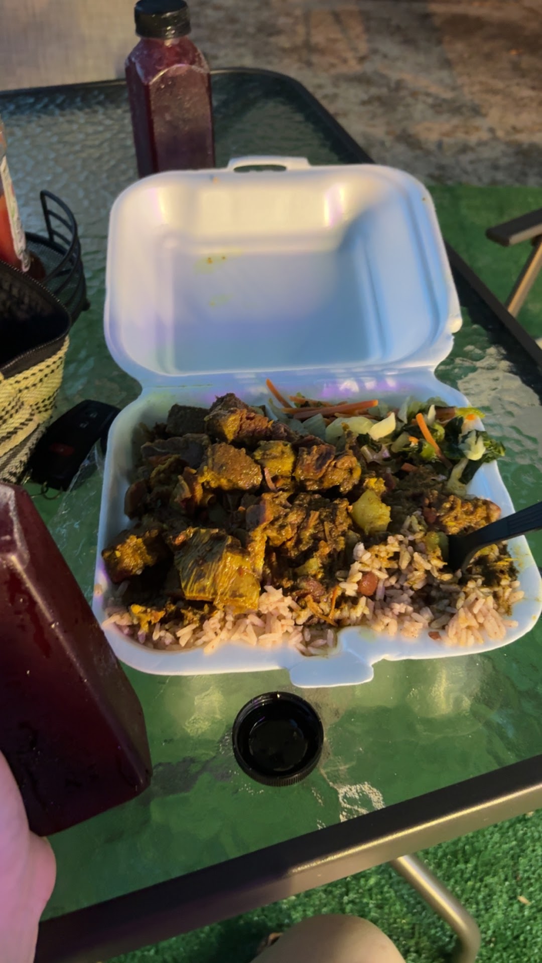 Read moreAll around the experience was phenomenal!!! Me and my husband eat here twice on our vacation our dude hooked us up with some delicious ginger hibiscus tea (love the ginger def real fruit blend) we got the curry goat with rice and beans and veggies !!! He got the fish with the festival and jerk sauce (coming from a woman who hates fish it was so perfectly seasoned best thing I ever put in my mouth) I feel like i could eat fish because of my guy whipping it up!! The festival with the jerk sauce was so damn good!!!!! đ I loved everything about the music the vibe was perfect if u donât like real authentic Jamaican food you probably wonât like it but I grew up eating it and it put me right back in that at...