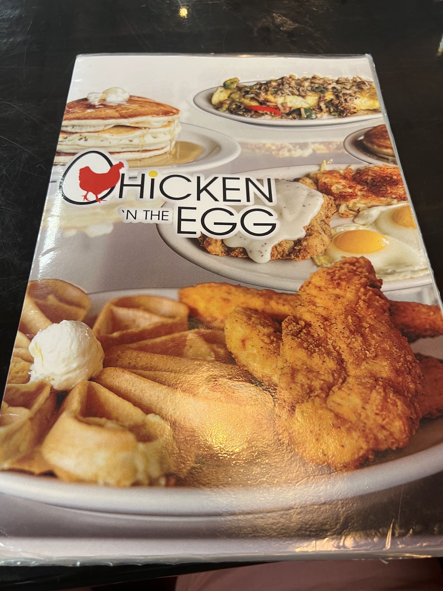 We chose this place with hope they would serve us some breakfast classics that we had prechecked on the menu prior to visiting Chicken āN The Egg. My wife got the big breakfast and I got the crispy chicken and eggs combo. Our waiter was great got our drinks and refills fast she did her job 10/10. She was very sweet and interacted with my son who is just 18 months old which I appreciate dearly. In terms of the food, it was subpar. The chicken seemed to be fried fresh but once I bit into it I could tell it was just dropped in the fryer to be reheated. Every bite felt like chewing on beef jerky, tough, dry, and stringy. I got a workout simply from attempting to eat the chicken and would not recommend this to anyone who canāt bench atleast 225. The eggs I ordered over easy which were cooked to the correct doneness but once I tried to cut the eggs with my fork there was a odd sliminess that was unusual. Iāve had plenty of over easy eggs and I like my eggs runny which I can recognize but this was a different kind of texture I hadnāt seen before. I was able to stomach the breakfast potatoes with some ketchup but they also seemed not fresh. My wife allowed me to eat a link of sausage and a piece of bacon from her meal since mine had went to shambles. The sausage was your standard sausage link which was good. The bacon was definitely microwave bacon. To top this all off I noticed someone from the kitchen looking over at our booth a few times while we were eating in a odd manner which now makes sense because I would be worried of the plate coming back if I served it to someone liked it was served to me. Price was steep our bill came out to over 50$. I donāt recommend this place unless you just really like friendly staff.