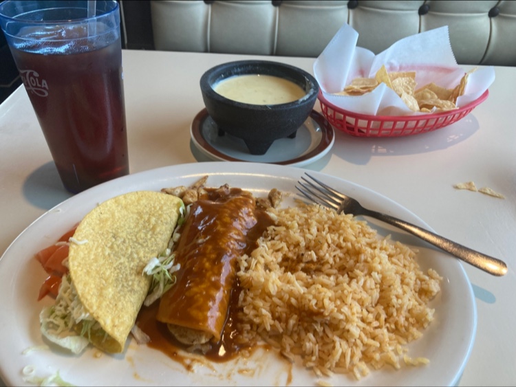 I got the Number 19 entree which was four enchiladas, bean, cheese, beef, and chicken, with the churros as a dessert and a margarita. The food was delicious, the drink a perfect compliment without going overboard.
