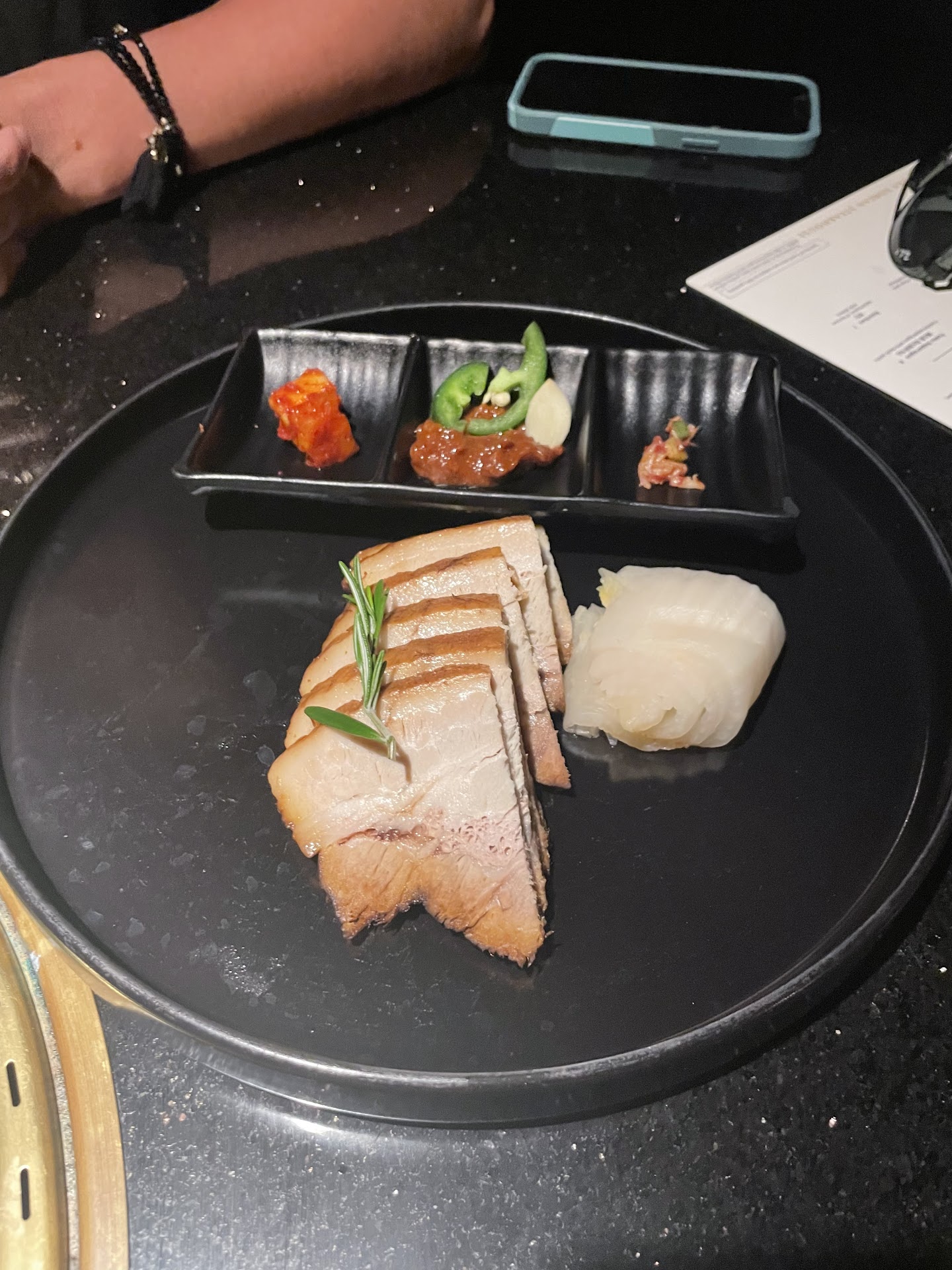 Read moreThis is HANDS DOWN the best Korean BBQ I've had in all of Florida! I'm married to a Korean who used to live by NYC, so that's saying A LOT. We live in Orlando, and so we were a bit concerned if this place would live up to the standards we already have for food. First of all, the interior of this place is very modern, elevated and clean. Dim lighting sets a great tone for a happy dining experience here. We had the wagyu nigiri to start, which was truly delightful. We chose the prime bbq option and had some of the best quality meat I've seen outside of my own butchershop. It made all the difference in overall taste and texture, melting away in our mouths piece by piece. We also got kimchi jiggae with beef instead of pork because of dietary restrictions, and it was absolute FIRE. I was pleasantly surprised they were able to accomodate that as most restaurants won't. Everything was just amazing. The staff was so knowledgeable and helped us choose the best side dishes like the jjamppong risotto (insert chef's kiss!). I could easily eat that as a main dish because it was BEYOND delicious. Even dessert blew me away. We went with our toddler, by the way, who is a little menace in restaurants, and she ate right alongside us! It was truly the best dine-in we've had in Destin so far. We are planning on going back again before we leave, because it...