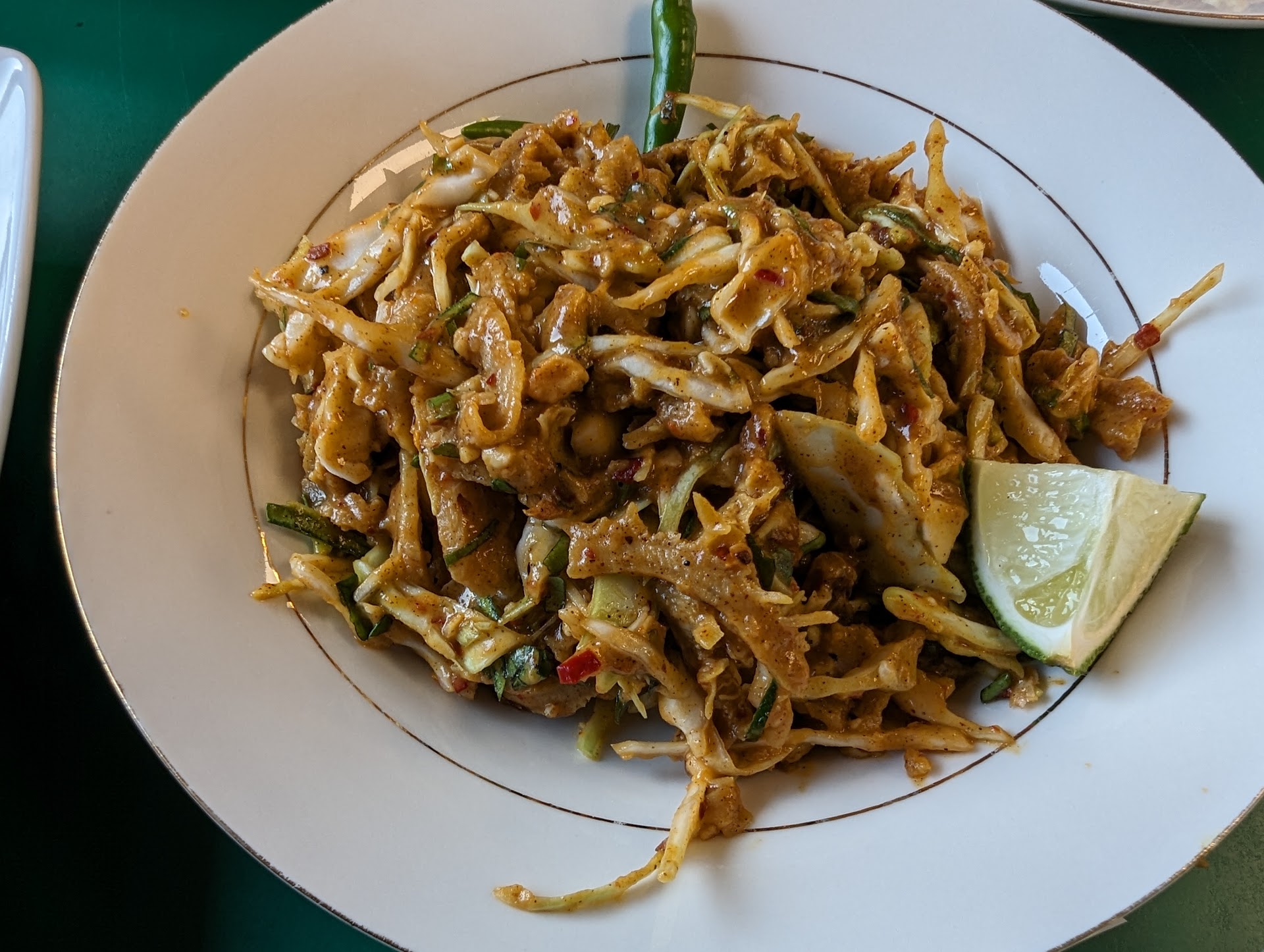 So yeah, Indian chef's solid. You know what's not just Aladdin's, but Fort Wayne's best-kept secret though? Burmese cuisine. Fort Wayne is one of the VERY FEW places in the entirety of America where you can find Burmese food, and most of them advertise as Thai. That being said, the thokes (Burmese salads) provided at Aladdin are superb. The laphet thoke (tea leaves salad) can be used as an appetizer, dessert, or, since it's an American portion for $7, as a way to have your day's worth of food on a college budget. The ame ou thoke (honeycomb tripe) is normally hot as hell, but I think they toned the spicy down a notch recently. Since the biryani lacks meat and the ame-ou smacks heat, I find combining the two to be a worthwhile experience. Asian Fusion, baby!