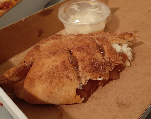Edit: changing to 4 instead of 5 stars. I had to wait 2 hours for my order because they delivered to the wrong address and they didn't offer any sort of compensation for the delay (free bread sticks? Free apple pie? Something..) I even gave a 20% tip. --- Best pizza in the area! Delivery arrived faster than predicted and the person was friendly. I got the 12" specialty combo (taco and pepperoni extreme) and apple pie calzone. My only recommendation is to provide cream cheese icing instead of buttercream icing.