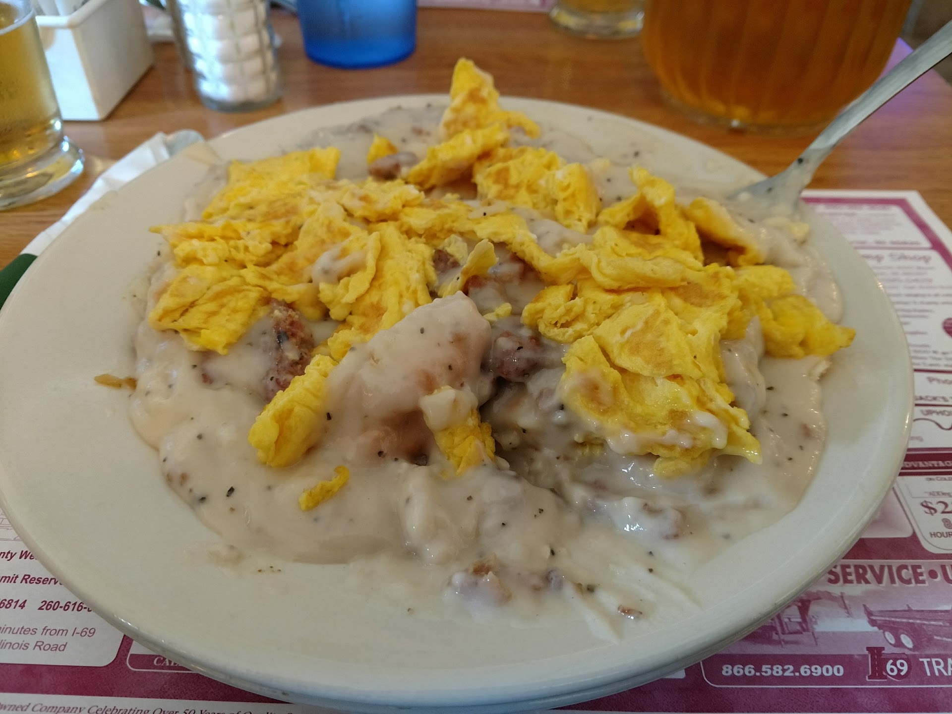 The restaurant is spacious, inviting, and clean. I came with my 10 year old son after church on Sunday. They were fairly busy, and I was ready for longer-than-usual wait times. The wait was actually shorter than I expected. I conversed with a few kind patrons, and the server was very attentive with coffee refills. That is the good.