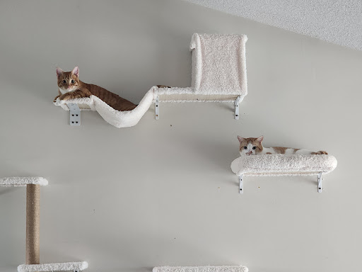 When I returned the next day, the staff remembered me which was such a heartwarming touch. It truly felt like coming back to a place where both people and cats are deeply cared for. That day, with Sam’s help (and a few treats), we coaxed Sanders down from his perch and made it official I adopted him! The team provided everything I needed, including all of his medical information, a cozy blanket, wet and dry food to help with his transition, and a little goodie bag (sadly, not for me, but full of treats for Mr. Cheezit).