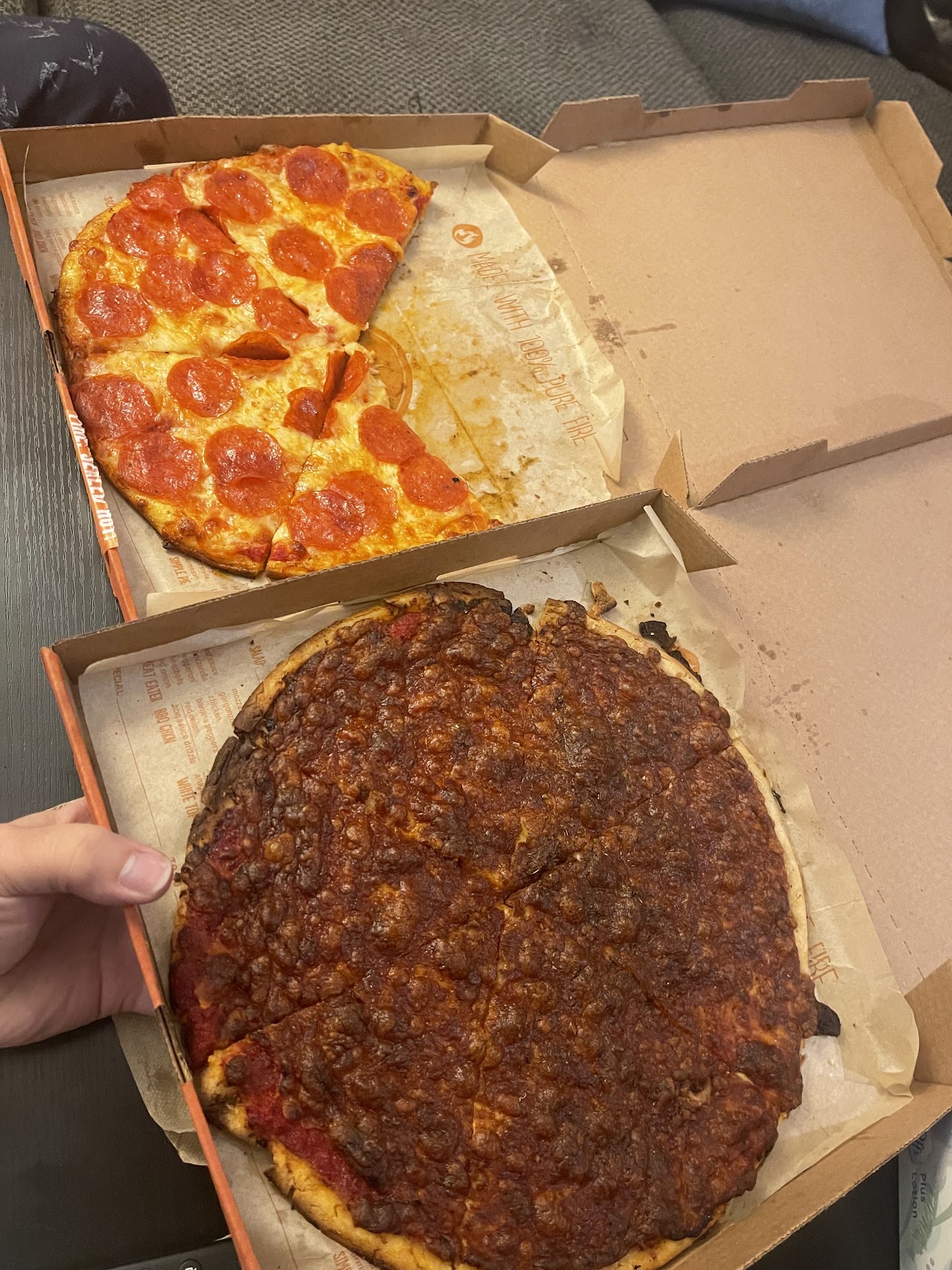 So I walk in around two and I see a dude in front of me with a long complicated order. That’s fine. I’m not paying much attention, until this blonde girl comes up and asks two boys if I’ve been helped, they jump up startled as they had not seen me. Mind you the line is only being managed by these three. You’d think that’d get them to pay attention. Nope. They then proceeded to both work together on one small salad. Now I’m getting a little pissed because I’m listening closer and realize they are gossiping about the family they just made the salad for. Then they have another jump-scare as they realize they have a secondary lunch rush and in the time that they could maintain a steady line they had instead have one out the door. Took 10 minutes to get asked what cheese I want on my pizza despite the fact that I was standing in front of them waiting while they were doing nothing more than gossip.