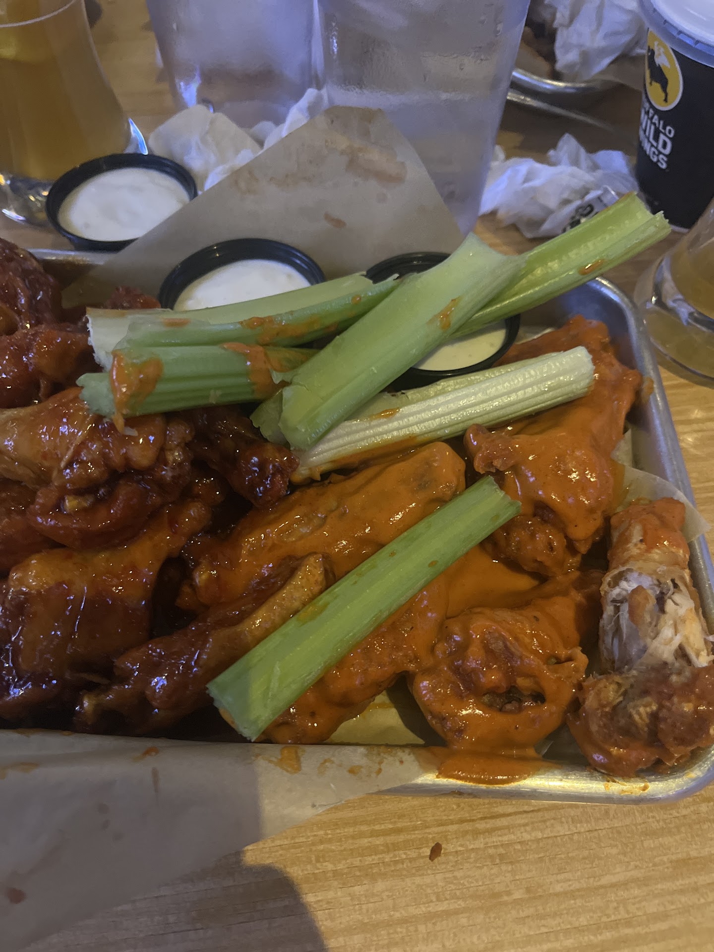 Read moreTotal disappointment during this visit. Has typically been a decent place. Stopped in after softball on Friday night to celebrate the end of season. We were seated quickly and they weren't real busy at 9:00 pm. Our server got us our drinks and took our order. The cheese curds came out quicker than refried beans at a Mexican restaurant! If it was longer than 2 minutes I'd be shocked! Sounds great, right? Wrong! They take longer than that to fry which told me they were already sitting there and were re-dropped in the grease to reheat. The exterior was dark dark brown and looked saturated in grease. From that point on it was 42 minutes to get 10 boneless wings, a cheeseburger, and a chicken sandwich. I counted 8 tables with customers and 90% already had there food. After 30 minutes the server stopped by and said, "It'll just be a few more minutes." Five minutes later she stopped again and said, "It'll be about another 5 minutes. Just waiting on your patties." How can it possibly take this long? If you're short on help let me know that. But don't make me believe a chicken patty and chicken nuggets take 30 minutes to cook and two smashburger patties take 40 minutes. When the food arrived the nuggets were half sauced and the garlic parm ones looked as though they had been sitting under the heat lamp for 40 minutes. My daughter took two bites of her sandwich and said, "I don't like BDubs because the chicken always tastes like the fries. It all tastes the same and I don't like it." The server didn't return for 8 minutes so I had to wait to ask for extra sauce for the chicken nuggets. $75 plus tip. Yeah, can't see me going back...