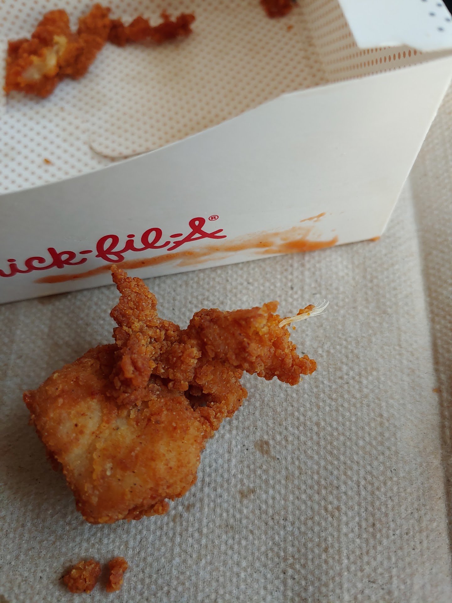 Now, let's talk about the star of the show—the chicken. Oh, sweet chicken! Chick-fil-A has mastered the art of frying chicken to crispy perfection. Each bite was a crunchy symphony of flavor, as if the chickens themselves had undergone a rigorous training program in culinary excellence. It was so good that I considered starting a petition to make "Chick-fil-A" a synonym for "mouthwatering deliciousness" in the dictionary.