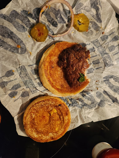 The bad: They burnt the bread on my Swiss patty melt. Like, super charred it. I'm sure the sandwich would have tasted like, well, a standard Swiss patty melt, which would be good, but it was pretty much just char and grease falling apart in my hand. Her sandwich (I can't recall which) was also greasy. A guy at work asked how I liked my first visit there, I told him the sandwich was burnt, he complained he feels like he needs a shower after eating there, and that summed it up perfect. BUT! I will say the grease adds flavor, so only neat freaks be afraid. I feel it's also pertinent to add, for people who are overly sensitive about customer service, the guy that brought the food forgot my drink. When I went to the counter, there was a woman sitting in a chair, I let her know, and she wordlessly handed me a cup. I don't expect niceties, though I'm sure they're all trained to say polite things, but I know many people take that kind of "service without a smile" personally.