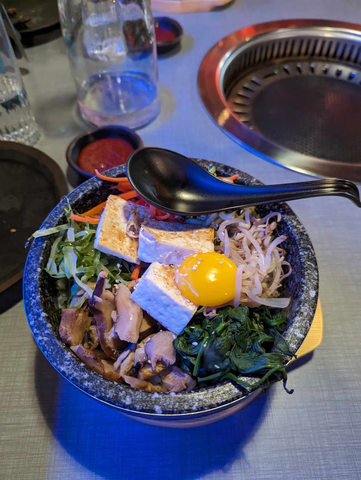 There are no authentic seasonings on the main dishes the veggies are just boiled or blanched without any seasoning and the bulgolgi chicken was just regular chicken. (Photo shows tofu hot rice bowl)