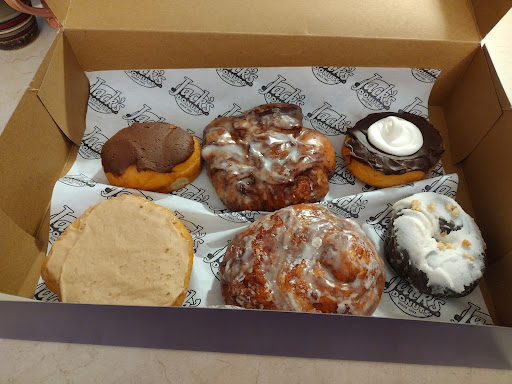 Read moreAs I was driving down Anthony, I noticed a sign for Jack's donuts. I wasn't looking for donuts. But I decided to go in and get a couple. The problem was, seeing the selection, there were so many I wanted to try. I ended up with half a dozen plus. The old fashioned lemon was great though mild in flavor. But the standout for me was the chocolate churro donut. Yummy. A chocolate donut with a sprinkling of cinnamon sugar, the best part being what I can only describe as cinnamon dulce de leche cream filling. I would have liked a little more of that just because of the rich flavor mixing with the chocolaty donut. I'm gonna think about that donut again and again. My husband really enjoyed the blueberry cake donut while my friend thought the cinnamon twist...