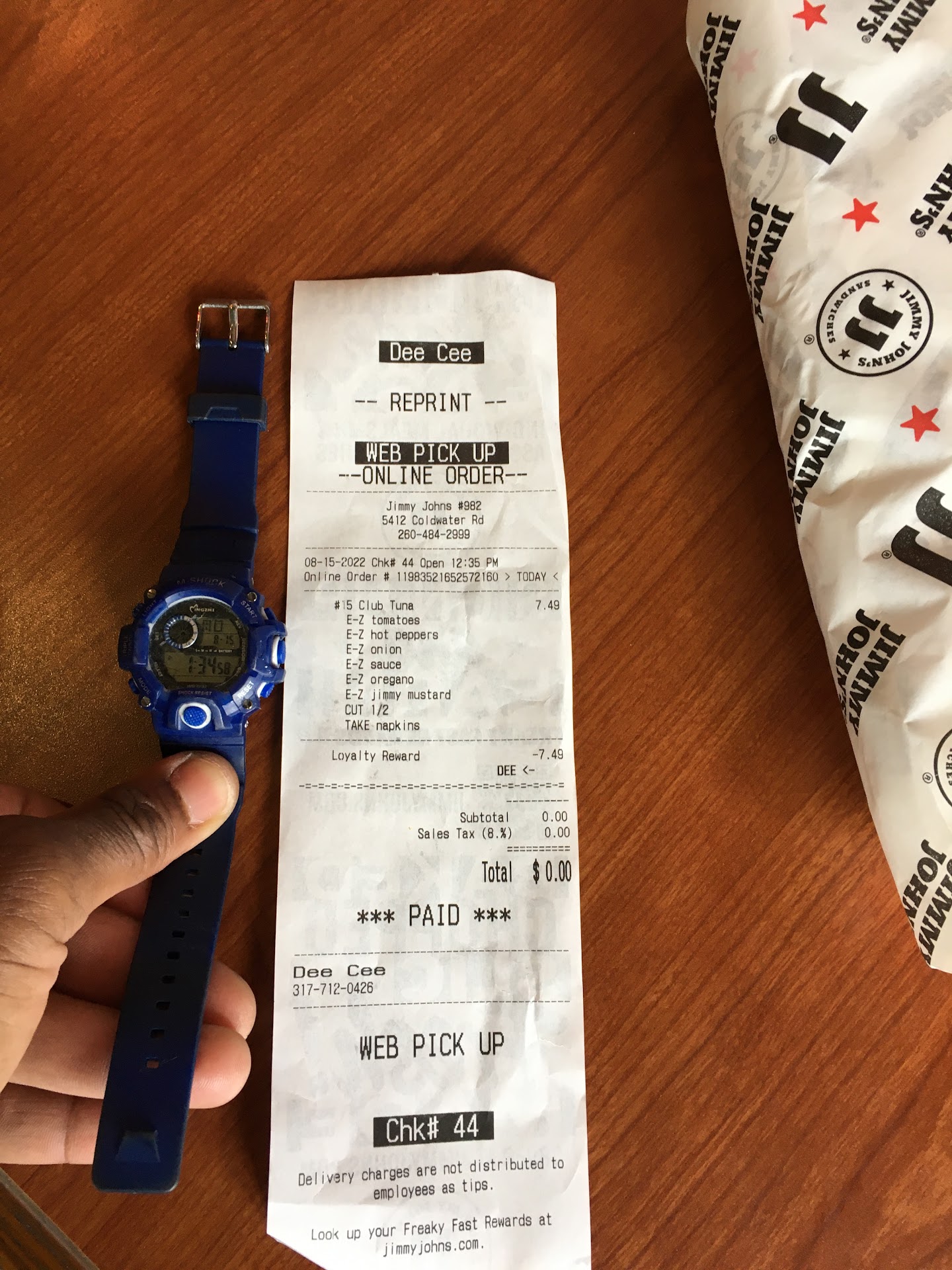 I made my online order on 8.15.22 at 12:35pm. Due to my busy work schedule, I just wanted to be able to quickly stop in and retrieve my order, once I was able to take a break from work.