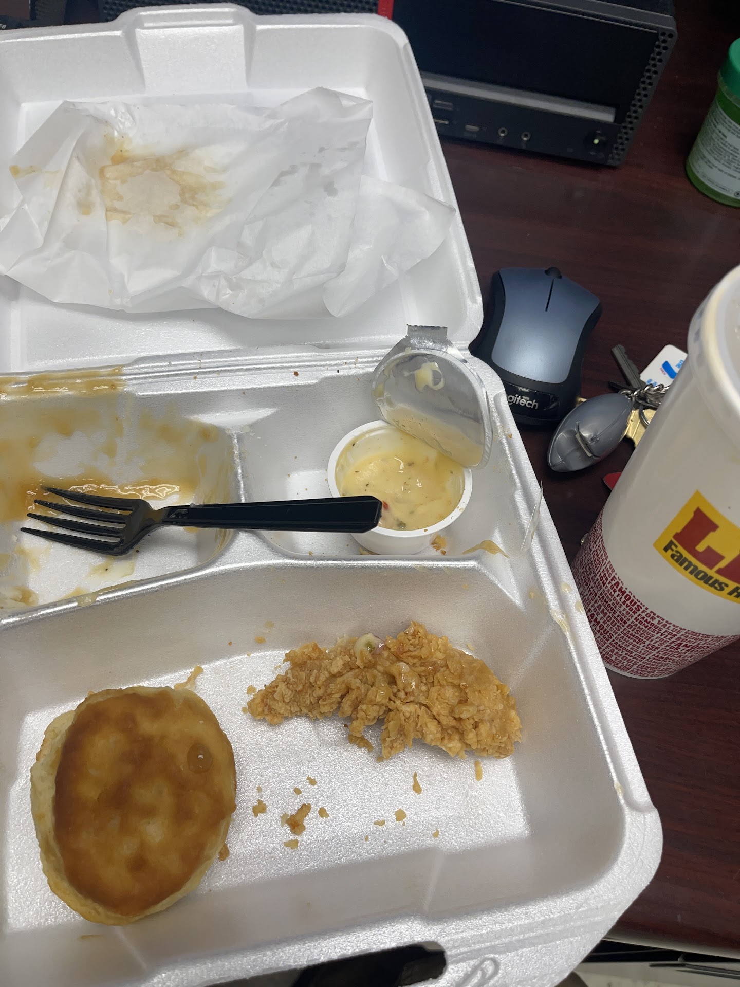 My family was hungry, and Lee's was something we don't have in the Atlanta area as far as we know. (We were visiting.) At 8:05pm on Saturday, the dining room was locked. I'm not sure if there was a sign on the door with differing hours for the dining room versus the drive through, but the information didn't seem to be "at a glance" online. Okay. It closes at 9, and the drive thru was open. My nephew and I went through the drive thru. And we were greeted by AI. Our order was taken by AI. And it was sort of incorrectly managed - by AI. I don't feel comfortable placing food orders by AI for this reason. This was my first experience with it. It was a bit shocking to come across, as I come from a much larger city, and none of our restaurants have audio AI at the drive thru. I feel it severely limits the human experience of being able to ask questions if needed.