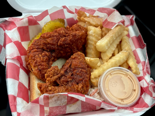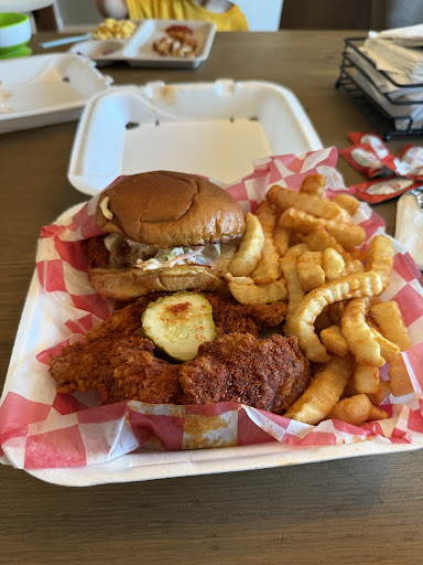Read moreAbsolutely INCREDIBLE. Some of the most flavorful hot chicken I’ve ever had. My wife and I both got the Tender/Slider combo. The tenders are HUGE. Slider is the size of a normal chicken sandwich. I love spice and got the Scorchin’. Great amount of heat while not being unbearable. My wife got Hot and loved it. The fries were delicious and well seasoned too. To top it off, the service was fantastic. The manager took my order and was super friendly and conversational. One of the best hot chicken joints we’ve ever had. Make sure y’all check...