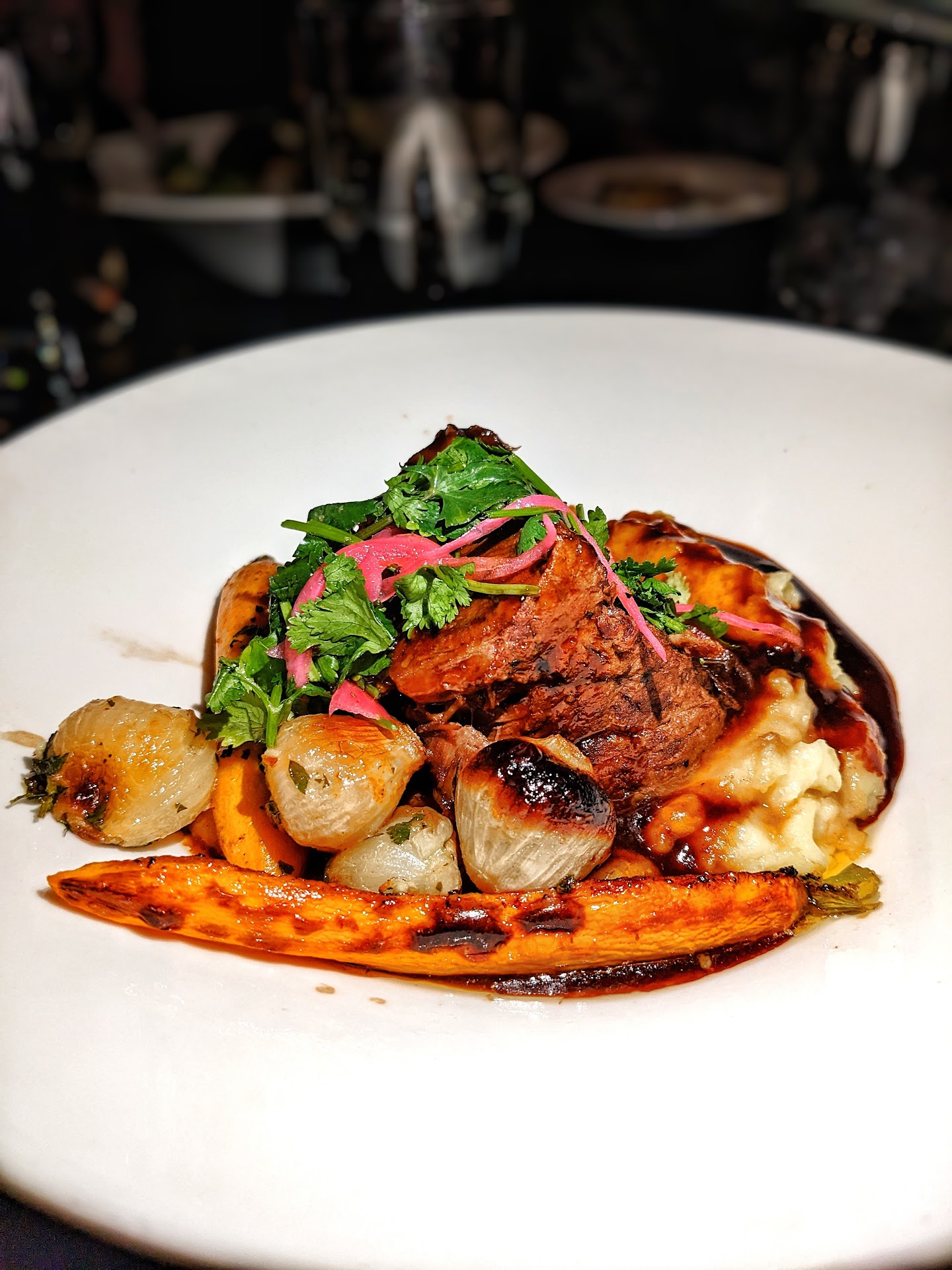To start our evening, we excitedly ordered the chilaquiles poutine - they even had the option to add eggs! For some reason, when our waitress dropped off the poutine appetizer, it came with two, cold, hard-boiled eggs and rushed off again. When she eventually returned and I asked about it, not only did she have no idea what chilaquiles are, (a Mexican breakfast dish notably categorized by a runny-yolk sunny side up egg) but she was unsure if the hard-boiled eggs were the correct accompaniment to the dish, something the management should have made crystal clear when educating the wait staff about the dishes. Very disappointing for a restaurant of Marquee's caliber, but we pushed through despite the disappointment.