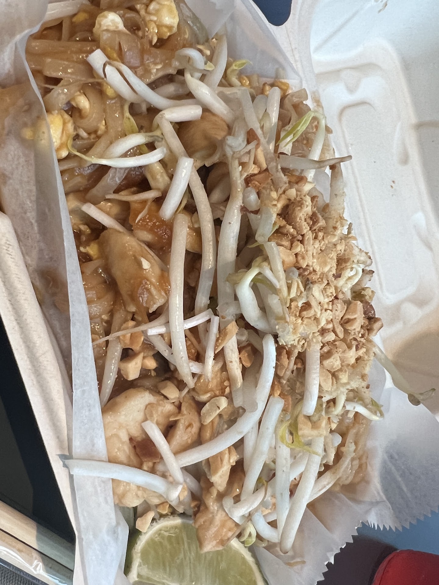 The pad thai was the absolute worst I have ever had. I have been to many Thai restaurants in the past and the texture from the pad thai here was almost like jelly. It was slimy and there was no texture, indicating they did not use fresh ingredients to make it. The Spicy Chicken fried rice was not spicy and bordered being bland as well. Beef Samosas were tasteless. Unseasoned inside. The dipping sauce provided is typically used for egg rolls and it had more flavor than the samosas. The wrapper provided texture at most. It tasted like it was frozen, fried, and served. The girls at the counter were nice. I'm not sure what they used in the pad thai that made it so slimy. But overall for all 3 items I spent $43. I will...
