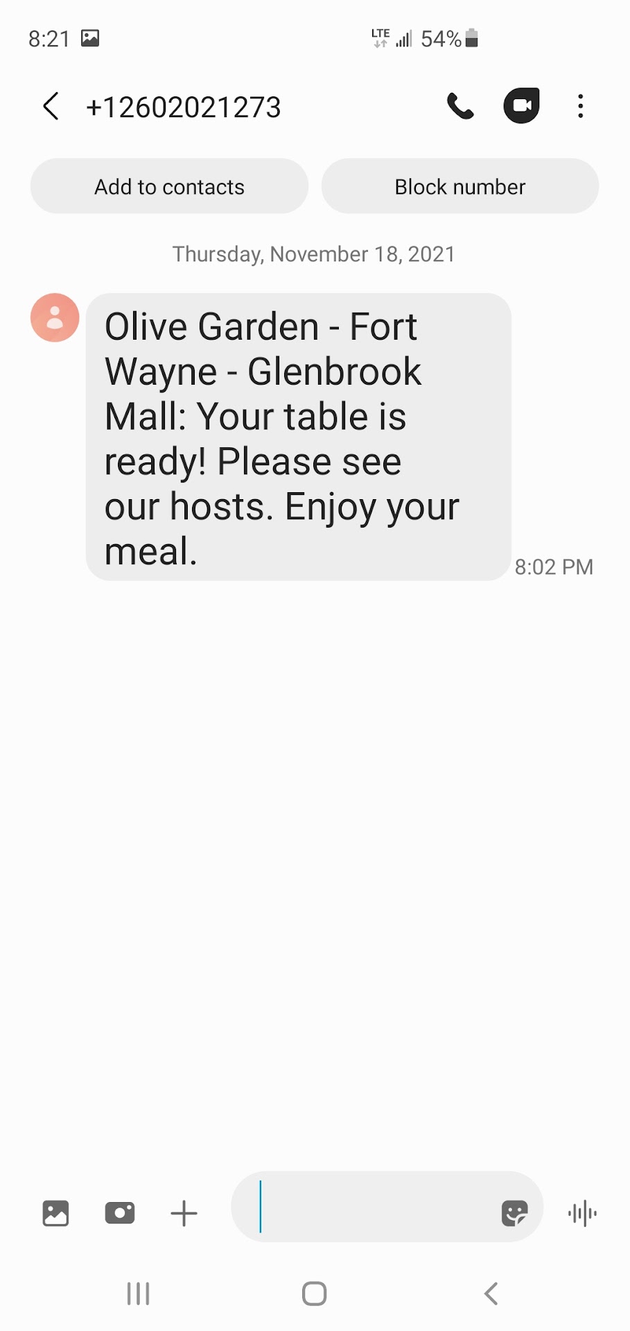 Read moreI wouldn't say that our family experience was excellent here, and it wasn't horrible either. We went with our three kids, and my mother in law, so we had a party of six altogether. We were seated within about twenty minutes on a busy Friday night. Our waiter came by to get our drink order fairly quickly, and brought them within a reasonable time. When they brought out the salads, and our silverware and everything, we lacked a set of silverware... That we had to wait for longer than we should have. The amount of salad they bring for a party of six wasn't very much to serve each of us. It tasted fine, but we didn't get another salad bowl offered to us. We had one serving of the bread, and that was it. When we ordered, we all didn't receive our food at the same time, which I find a little annoying. As a family sitting down at a restaurant, you expect to be eating together... but half of us got our food, while the other half had to wait on theirs to come out like fifteen minutes later. The food was okay, but I think the portions are quite small for the price you pay... We didn't go when they run their all you can eat pasta... My dinner was eaten in like five bites... I was a bit under-impressed. The waiter was a nice young college kid, who had a nice personality, but I don't feel like all of the kitchen staff had it all together that night to allow for the waiter to accommodate better on the time difference of the food being served at our table. He was apologetic for the missing silverware, ect... We haven't returned to the Olive Garden since. My husband felt like it was way over-priced fare for what you actually get. The restaurant is kind of pretty, but it was very very loud. I love Italian food and was a bit disappointed in the overall experience. I think this chain has scaled back way too much on their serving sizes, since many years ago when they first appeared in the town where I'm from. I still recall my first experience at Olive Garden, and thought the food was outstanding then, plus the portions would definitely fill you up back then. This Olive Garden in Fort Wayne and the last one I visited out in Kansas was about the same on the food and service. Not the worst, but definitely hasn't done anything to keep me or my family coming back as a...