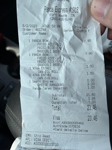 Read moreMy kids and I had planned to meet my parents at this establishment, but my four-year-old does not like the spicy food there, so we stopped and got him a tiny sandwich and chips from Jimmy John’s before arriving at panda express. We were getting settled at a table, setting out his sandwich and were approached by an employee who said that we couldn’t have outside food in the restaurant. we asked even for the small child? We are going to all order food… There were six more of us. She said she would ask her manager, who is the one who sent her to confront us. I got up to the front of the line to order food and the manager passive aggressively asked the other employee did you tell them? And she said yes. And she said, what did they say? I was standing right in front of her so I told her we threw away all of the Jimmy John’s branded bags and papers so he only had the tiny sandwich. I told her all the rest of us would be eating food here placing an order. She said well it’s all our policy that we can’t bring outside food in. I said I understand that, but what are we supposed to do go outside and eat in the sweltering heat? She said yes if you could do that that be great. And I was like well I’m not gonna have my Children and my older parents eat outside in the heat. Would you rather a lose business? Because if you can’t eat here inside, then we’re going to leave and she said that’s fine so we left. We went across the street to Chick-fil-A where we were welcomed with open arms. My son brought in his sandwich and his chips and the kind woman who works the table area. I brought over a little placemat for him to put his non-Chick-fil-A food on and nobody said anything about us having different food there. Thank you Chick-fil-A, the customer is always right, they made a big sale on our...