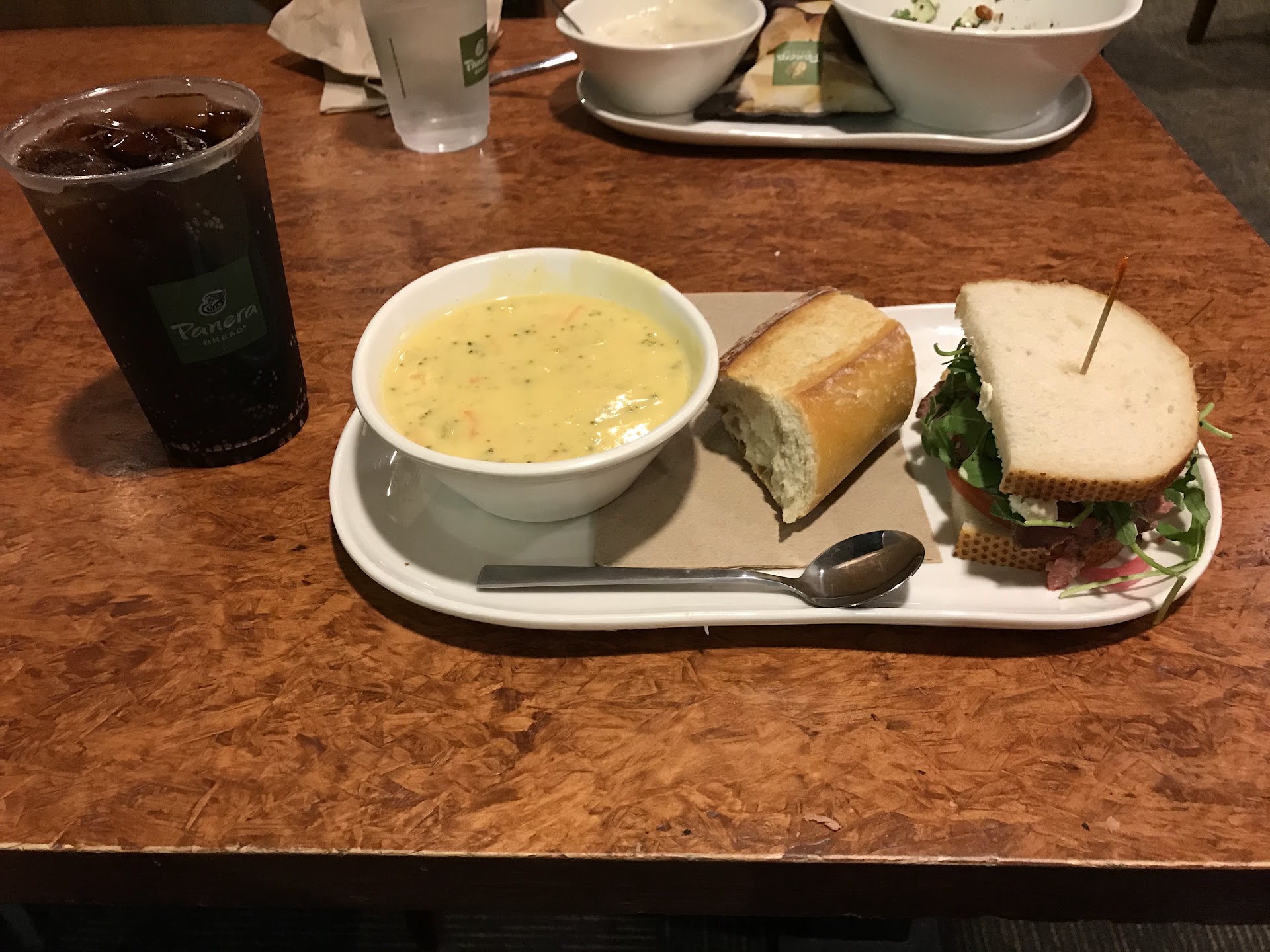 Panera Bread is heavenly! I ordered through their drive thru and I was given enough time to decide what I wanted to order without feeling pressured or rushed. The employee was helpful with explaining the prices of things I asked about. The food has always been amazing at Panera Bread. Even though it's pricey sometimes, it's nice to find a fast food restaurant that has an excellent variety of sandwiches, soups, salads, pastries, coffees, drinks, bagels, and bread that is top notch. I recommend the Asiago cheese bagel, the cinnamon crunch bagel, the Frontega chicken sandwich, the french onion soup, chicken and wild rice soup, and breakfast souflee's. Great coffee too! The employee there was friendly and even offered an extra coffee they had mistakenly made for free! Also an insider tip: you can ask the salad and sandwich cooks to throw on some extra parmesan cheese on your Cesar salad or French onion soup, and they will give you more cheese without charging you. Also with your soup/sandwich you get a complimentary side of either kettle cooked potato chips, or a generous piece of French baguette, or an apple. You can also opt for the multi-grain baguette if you prefer at no additional cost. I've often thought of Panera bread as the white collar McDonald's, but regardless, the food is beyond delicious and you leave a...