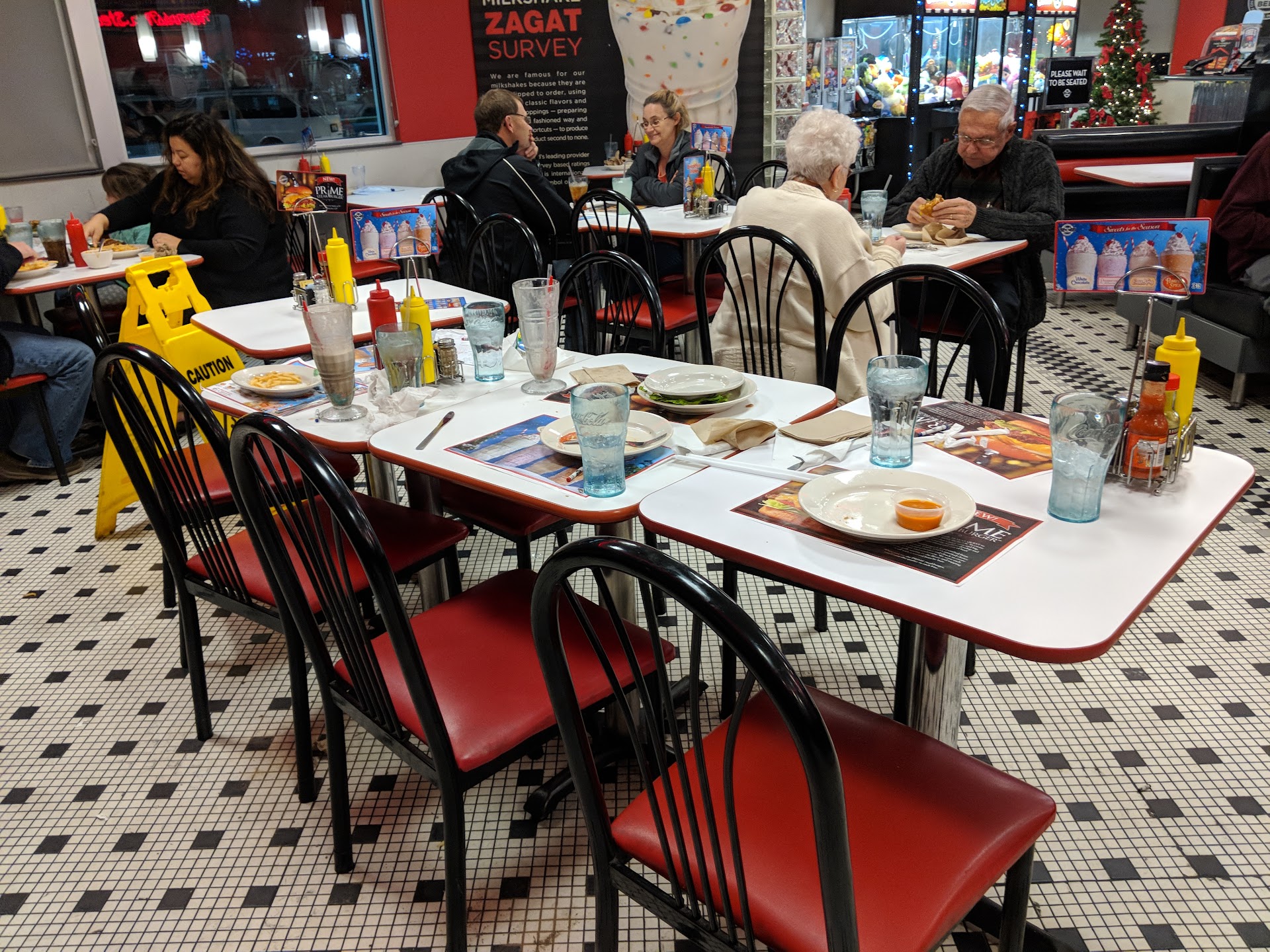 Read moreSunday night, not busy. Milkshake came without whipped cream. We were told that they were "out" of whipped cream. They were also out of spoons (all the spoons in the restaurant were dirty), so we were brought a tiny flimsy plastic spoon that is worthless for eating a milkshake. Then chili was served. A cup and a bowl were ordered. We were given two cups, and one more plastic spoon. We were told that that it was the very last spoon in the restaurant. We waited another 20 minutes before they were done washing the metal spoons, at which point we were given one soup spoon and one regular spoon and the chili was cold by that point. When the burgers and fries came, the fries were thicker fries than Steak and Shake normally serves. When we asked the server, her explanation was "Well, they've been that way all day." Finally, we asked to speak to a manager. The manager explained that they had run out of everything and so had gone to the grocery store to purchase fries and plastic spoons because they didn't have a dishwasher and so it took too long to wash the silverware. During the time we were there, three tables sat with dirty dishes and weren't cleaned. An employee came out with a broom and dustpan, however, she left the floor dirty and pulled chairs out all over the place, leaving the whole restaurant looking disheveled. We sat waiting for our bill when finally we noticed it had been thrown at the end of the table with no notice from the server. Our server and the manager we had spoken to rang up our bill and offered no further discount or apology, seeming to believe that the explanations and excuses were justification enough for the appalling service...