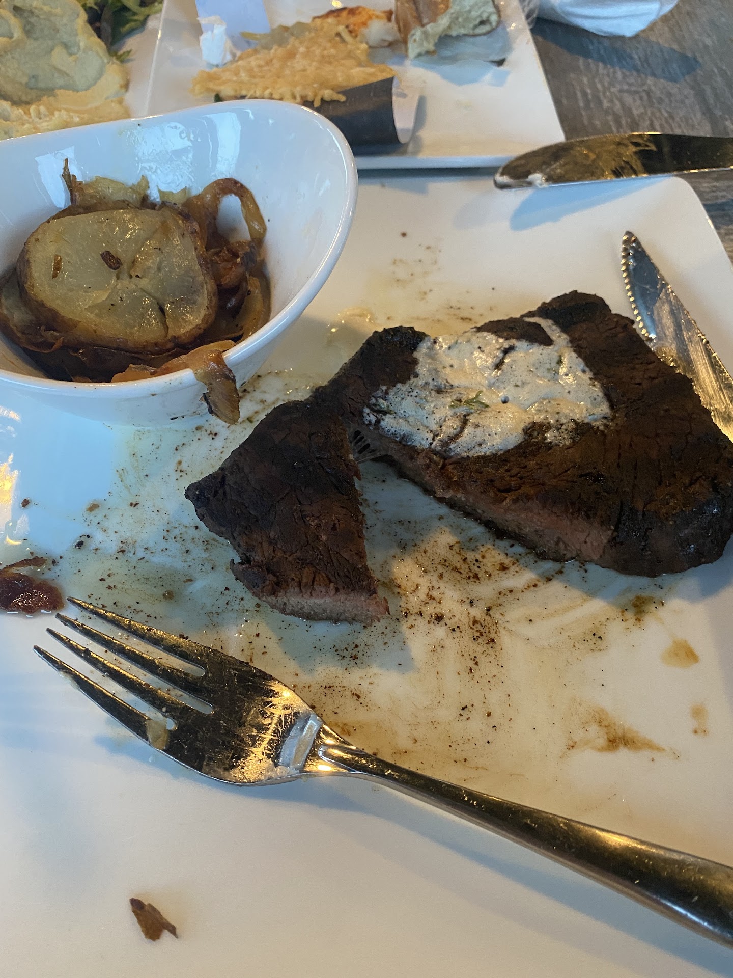 Went here for a date night. The place is not a place to casually dress. Business casual at minimum. Jeans are fine but no sweatpants. Decor is nicely done. Pretty bright. But frankly the place was NOISY. They need some serious sound treatment. Service was awesome. Very attentive. Food is pretty good as well, however VERY overpriced for what you get. For those prices, I’d rather go to Cork N Cleaver where it’s quieter and the food is better. I’m not saying the food is bad. It’s not. But a place’s French onion soup tells a lot… and Summit’s is in the higher mid-range. Not amazing (which does exist here in Fort Wayne) but definitely good. I ate it all. It’s your pretty standard French onion soup that’s well done with enough cheese that’s toasted and nice and pretty. We had the Texas Twinkies, which were pretty great. Totally recommend those. I had the Chipotle chicken and shrimp with gluten free pasta and it frickin tasted like a campfire… it was AWESOME. Nice and spicy. Husband had the brown sugar bone in pork chops. He loved it as well, but he says for the price, it should have been a thicker pork chop. It’s nice to sit and chat with some wine over a meal. It’s a nice place.