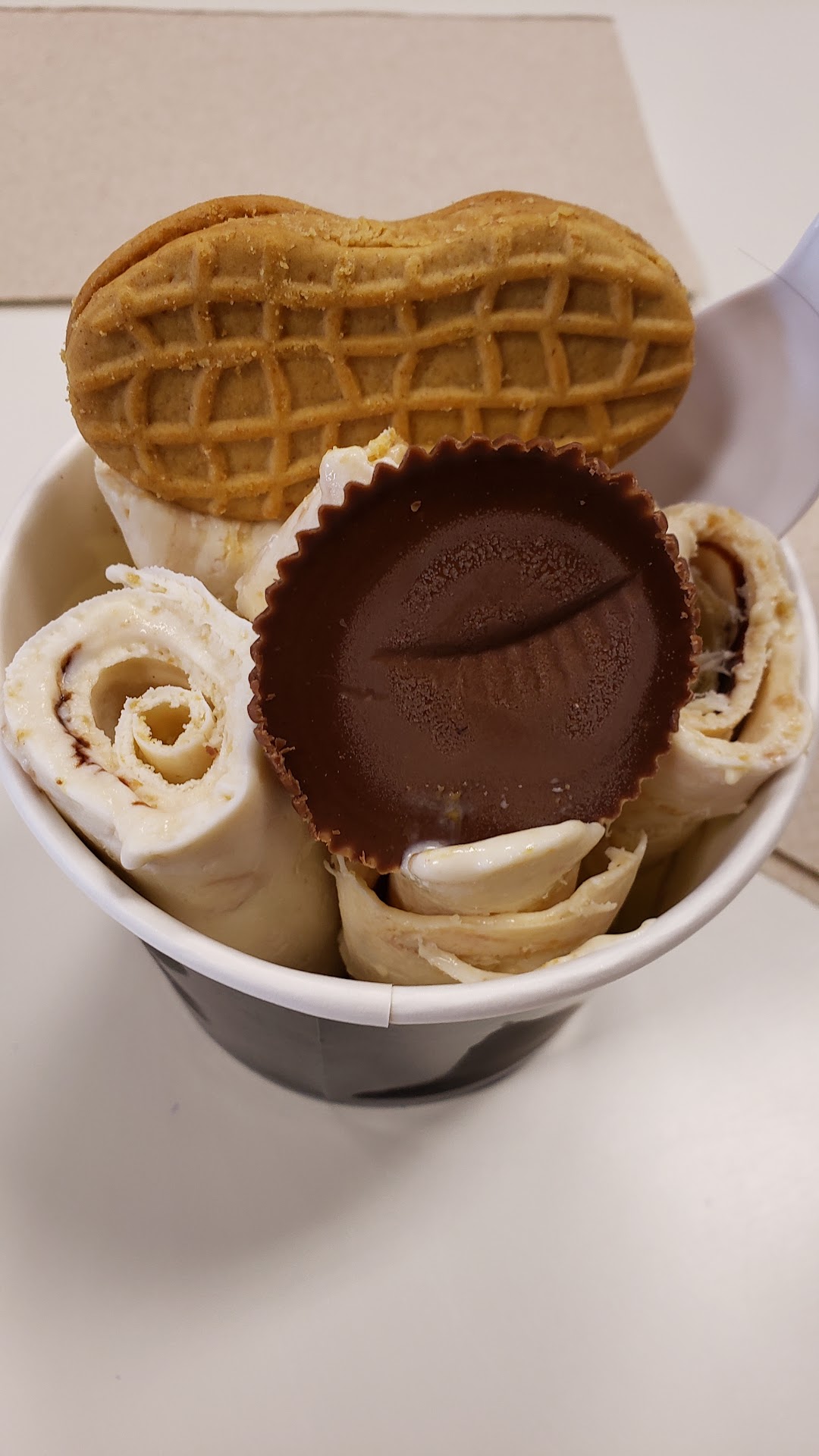 As for the ice cream: being a coldstone-style ice cream shop, there's a greater variety of available mix-ins, but the overall flavor lacks depth and richness. I got a triple chocolate cake, and as my pal described it, it tasted like milk and the cake that got mixed in, and that was about it. Very disappointing. I also wonder if rolling the ice cream (a baffling trend in my opinion) also contributed to the loss of a dynamic flavor.