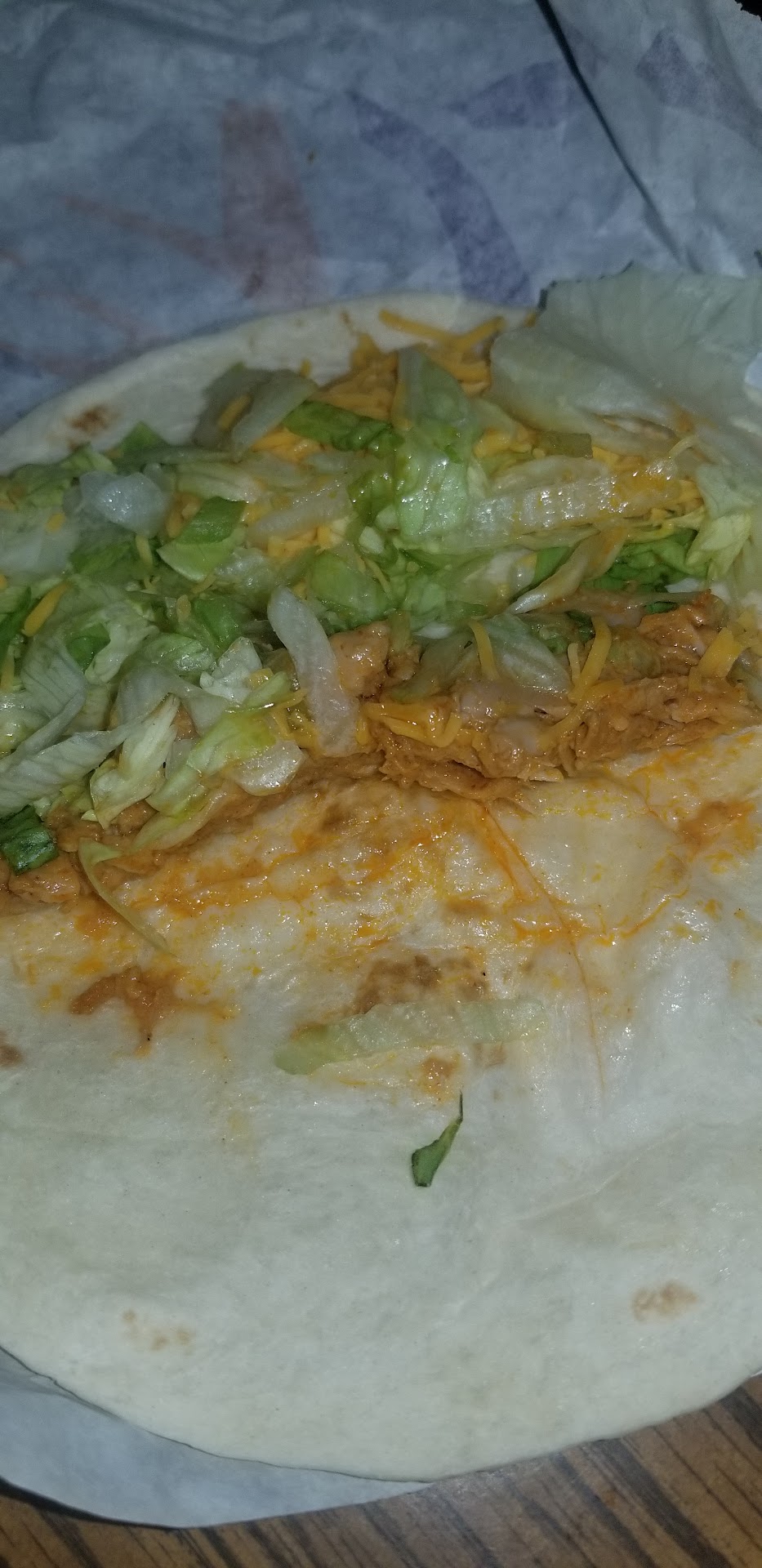 Ā Ā Ā Read moreHorrible, horrible experience! I ordered two bean burritos with lettuce and extra onions, easy on the red sauce. I don't know who assembled them but they were an absolute train wreck! I only got to eat about half of my first one because the tortilla they made this burrito with was dry and terribly ripped, not to mention about 95% beans, so as soon as I picked it up and took a bite, it tore in half and the burrito splattered onto my wrapper. There was no way to eat it without a spoon and we'd already left the area, so I was just out of luck.