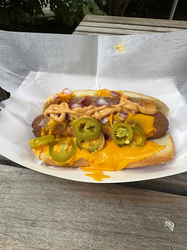 Had a good time at Ted's Snack + Bar. The place actually has a nice atmosphere for being so small. There is a row of bar stool seating along the window. I had a Chicago dog and I thought it was pretty good. Dill pickle, relish, brown mustard. The menu boards are bright and fun while being informative. I also found that the website was accurate in relation to the food and draft beers that are available. They have a decent selection of beer on-tap and a wide variety of cans available as well. There is also plenty of outdoor seating as they are located right inside promenade Park. You cannot take the alcohol past a certain point, but you can definitely get an in-the-park. Feel while you are eating your snack or drinking your beverage. Definitely stop by the next time you are in the park or just want to relax a bit with a snack...