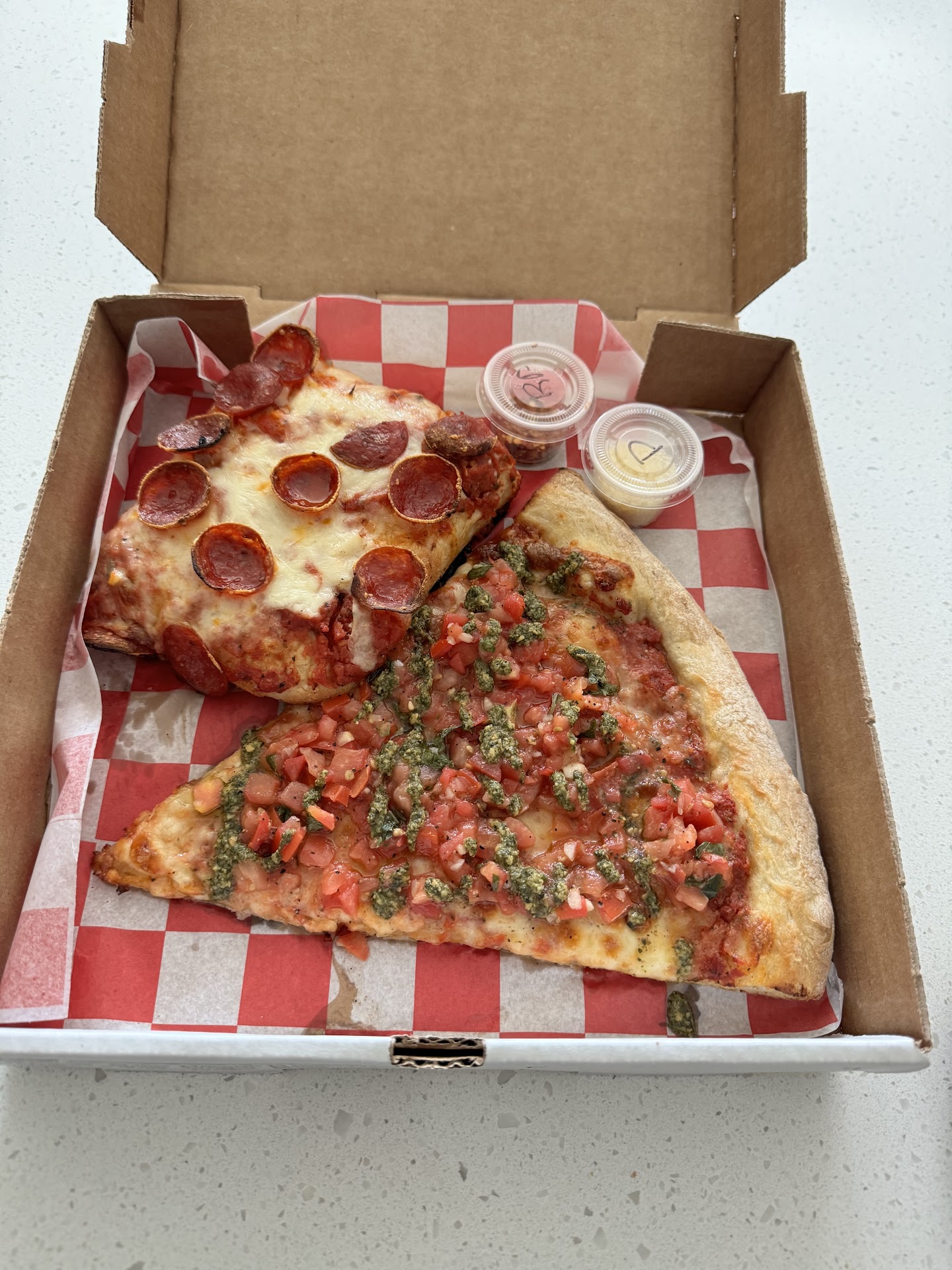 Read moreMy daughter got the Buffalo wings and a side of ranch. She said the sauce wasn't Buffalo at all but more just hot sauce. The ranch tasted more like French onion dip and was super thick. When I told the associate about it, they said they thought the recipe called for an awful lot onion powder, so there's that. My daughter could hardly finish her food. I got the slice of cheese pizza and the ceasar side salad. They were both just ok. My ceasar dressing was just as thick as my daughter's ranch. They were more like dips than dressings. We also got cheese garlic bread with marina for dipping. The marinara was so spicy we didn't even eat it. The garlic bread was ok as well. I think I dropped $40 for all of it, which seemed steep for the two of us. The garlic bread alone was $9.99. I had really high hopes, but unfortunately don't think...