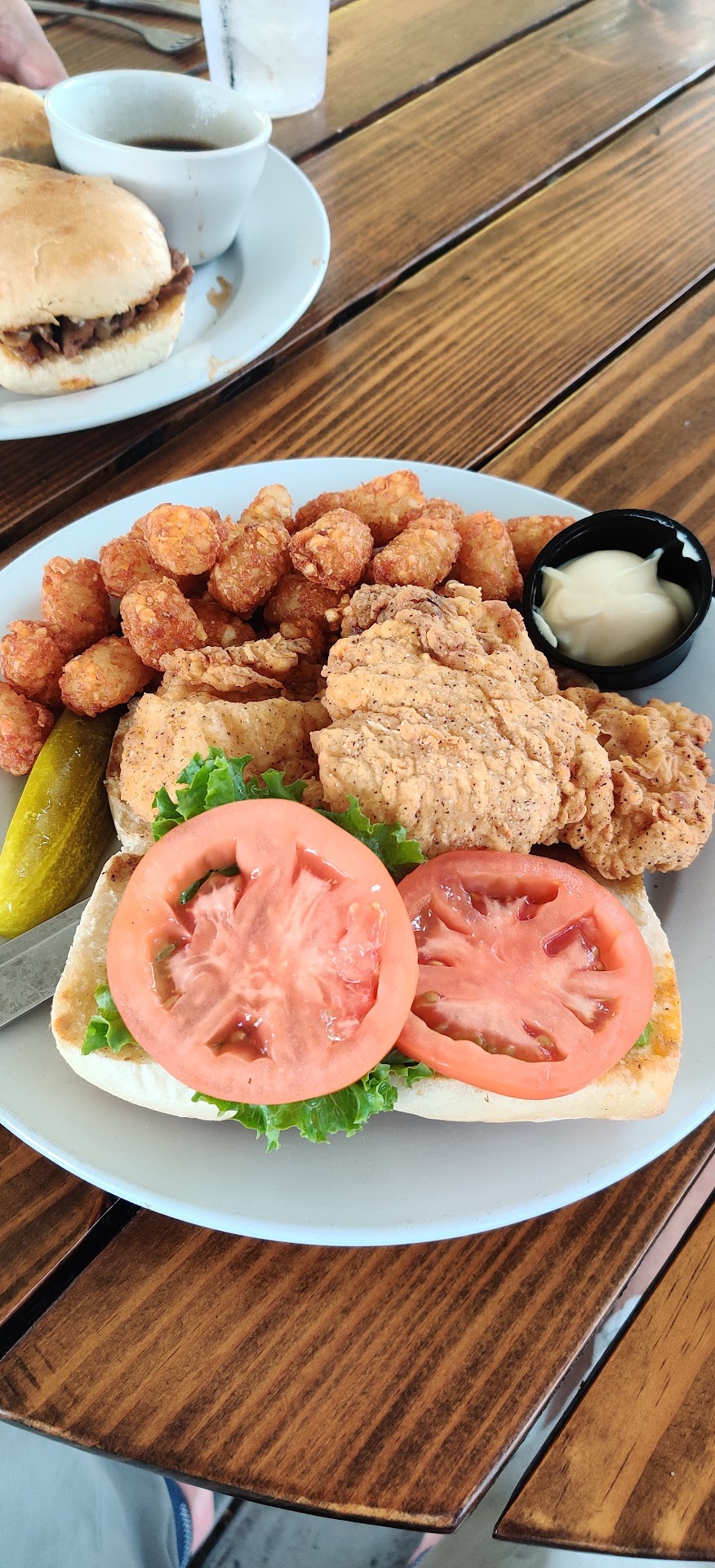 Read moreTwo of us visited the The Deck for the first time around 3 p.m. on a Monday. The view and pleasant outdoor atmosphere is great! The service was slow for someone to arrive at our table. When she arrived she was just present with really no personality. A friendlier server then took over because the first one left for the day. My portobello sandwich was good but my husbandâs Poor Boy sandwich was underwhelming. Upon leaving the girl at the hostess station said nothing as she was visiting with 2 other employees. A âhope to see you againâ with a smile might have been nice. One of the employees said âI hope we donât get any busierâ to the hostess as we were leaving. I felt like we were bothering her. There were literally 4 people in the bar and 4 in the dining room including ourselves. When the young âhostessâ sat us she said nothing and put the menus down on the table. We asked to move to the river side. There were only 2 other people there but she never asked if we had a preference. We would go back for the view and outdoor ambiance but would order something different to eat. The customer service, however, and welcoming attitude needs to step it up a notch. I am giving a 4 star rather than 3 because of the outdoor setting. I was generous also with a 4 for the food but willing to try it again and order...