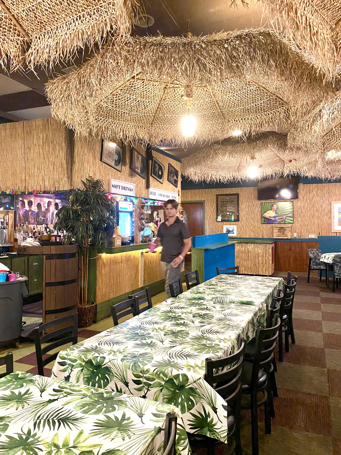 The decor was friendly and the atmosphere was great. The only things that I would like to see done is if the lamps on the tables are going to stay they should be cleaned everyday. Our looked like it had grease caked on the beads of the lampshade and the dust on the railings was a bit off putting. Also the umbrellas hanging from the celeing are fine but could do with a good wiping down as you could see the discoloration from the dust. The dust seemed to be on everything, the decor, the trees, the rocks in the planters. A good once over every couple of weeks or once a month would help...