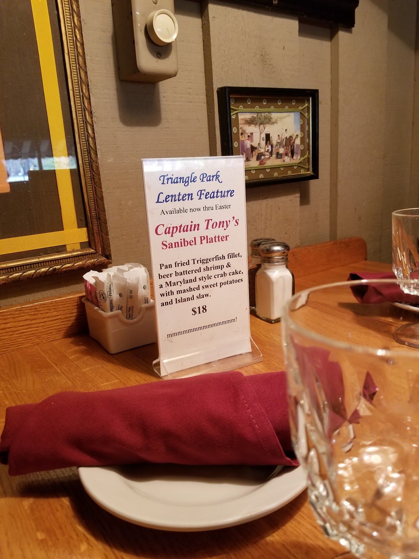 I really like the look and feel of the place. The staff is nice, and helpful as well. Even when they are super busy they stay happy. But the actual food part of it seems to lack. Especially for the price. None of the food looked anything special. We had a couple steaks that were very overdone, one didn't even get eaten. But it was a birthday party and we had a huge party, and nobody wanted to complain. I still really don't, the experience is great. It's a cozy place. But I have to mention the food because not only is it a restaurant, but a little pricey. Shouldn't have to half the steak the lobster dinner home to the dog because it was overdone. Not at the price point. The experience was wonderful. Just not so much the food tonight. They also seemed to really neglect the parking lot. It was like scaling Everest getting inside from the car. Couple people from our party went out to smoke and spent 15 minutes helping older folks get safely to their cars. After saying something they did throw some melt outside. Just strange to neglect the ice when hundreds of people will trek across it daily. I'll definitely be back to triangle park, but probably just...