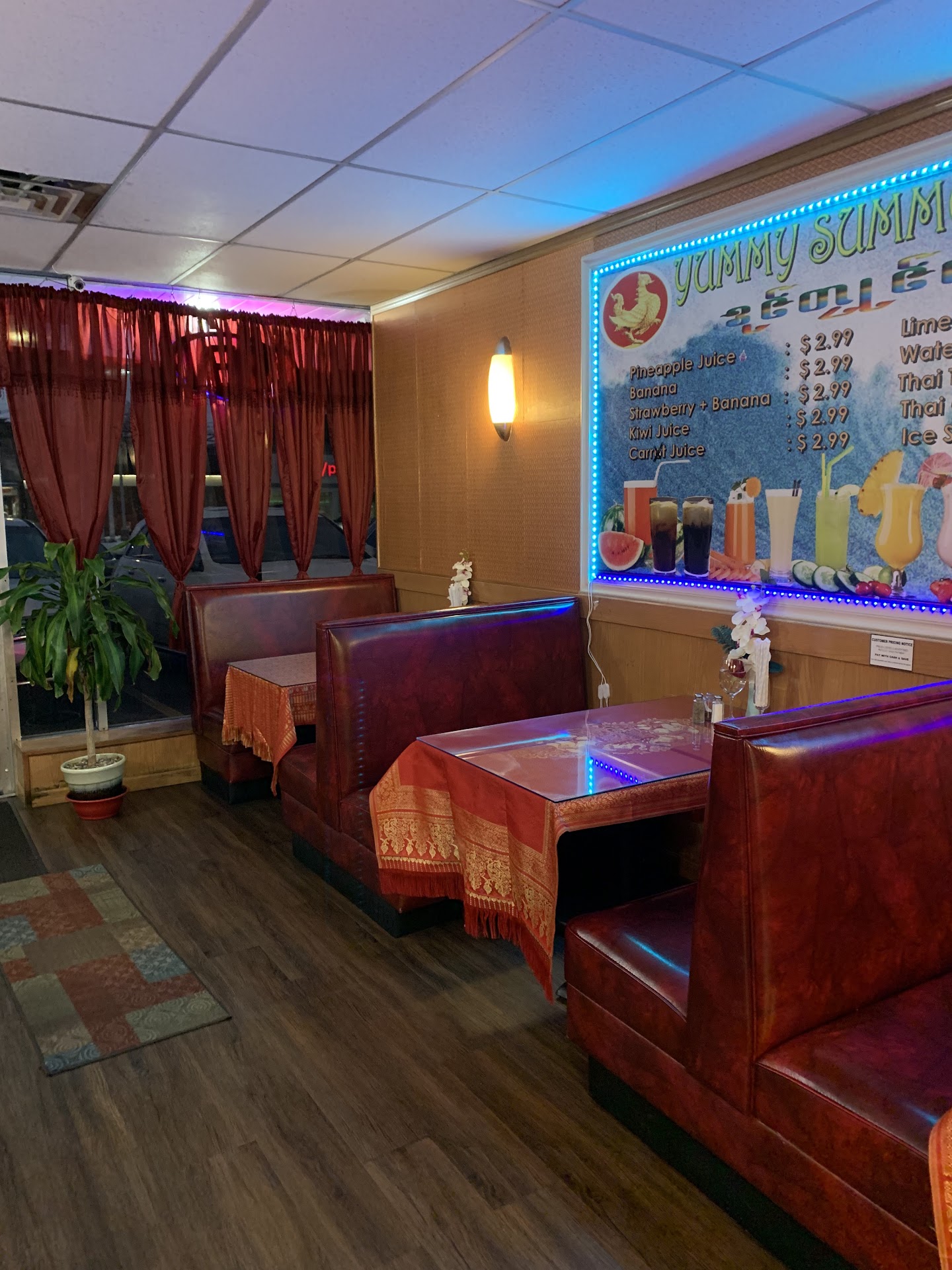 Ā Ā Ā Read moreI really do not understand why this restaurant is rated so highly. When we walked in, it took several minutes for someone to come out of the back and seat us. After that, it took at least another five minutes to come back with menus. Our waiter got us our drinks pretty quickly, but took forever to come take our orders. After he did finally take our orders, he didnt refill our empty water glasses. It then took more than 45 minutes to get our appetizer, and more than an hour to get our entrees. When they did come, my seafood tom yum soup did not have the scallops in it that it was supposed to. It was also way spicier than the two I ordered it at, making it far too spicy to eat. When I told our waiter that it was missing the scallops, he told me it didn't come with scallops, even though it clearly says it does on the menu, and argued with me about the spice. I asked him to take it off the ticket, which he did without further argument. The entire reason I ordered the soup was for the scallops. Don't tell me there aren't scallops in it if it says there are...