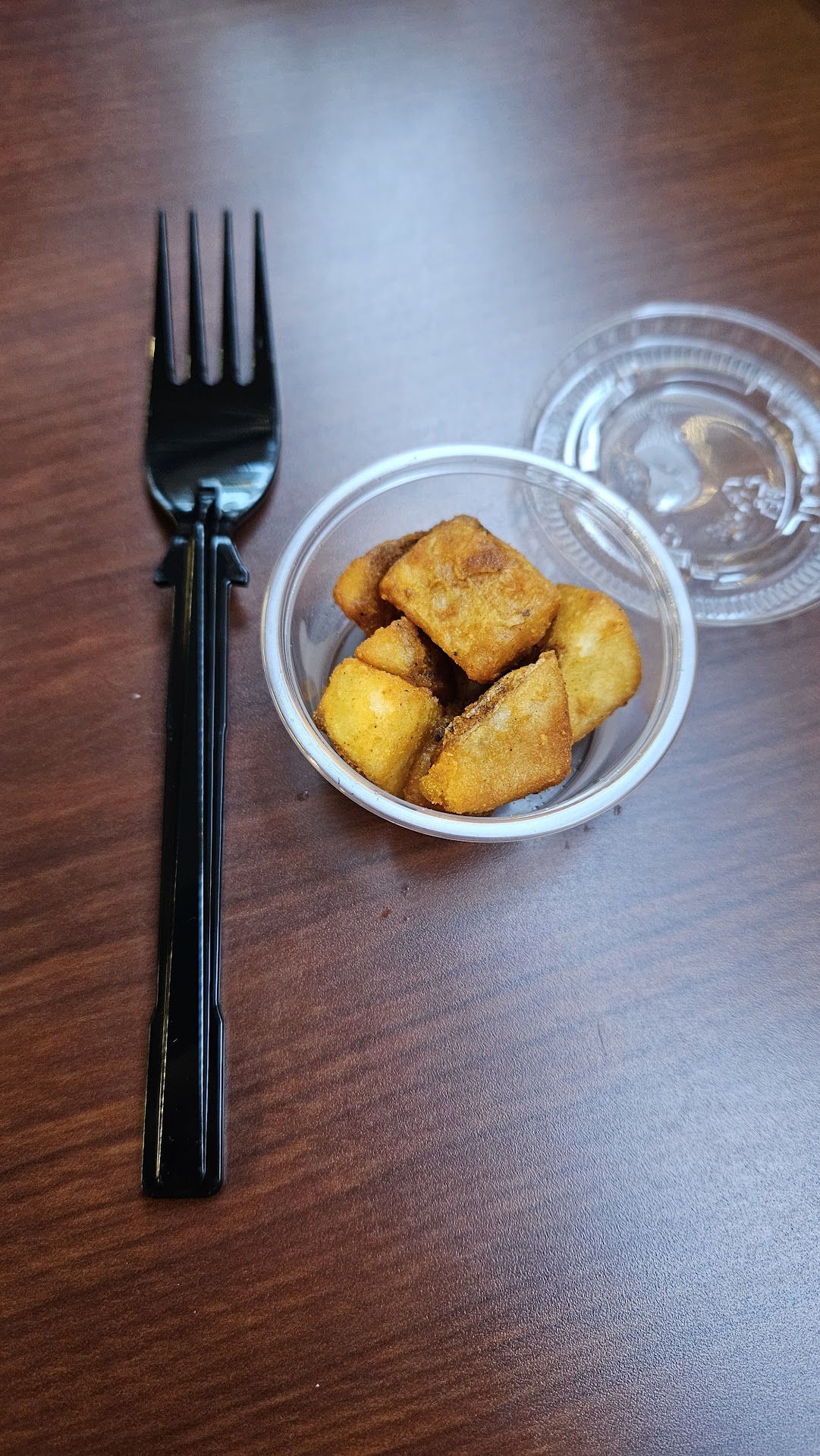 THE HOMEFRIES (potatoes) WERE PORTIONED IN A CONDIMENT CUP. Are you kidding me??? IT'S POTATOES. THEY ARENT EXPENSIVE! I was not in any way hoping for, expecting or WANTING a large portion... but are you kidding me?? Potatoes are so cheap, that's where you are skimping?? ( btw, for comedic effect, I decided to count the number of potato cubes inside the condoment cup.. it came to seven.)