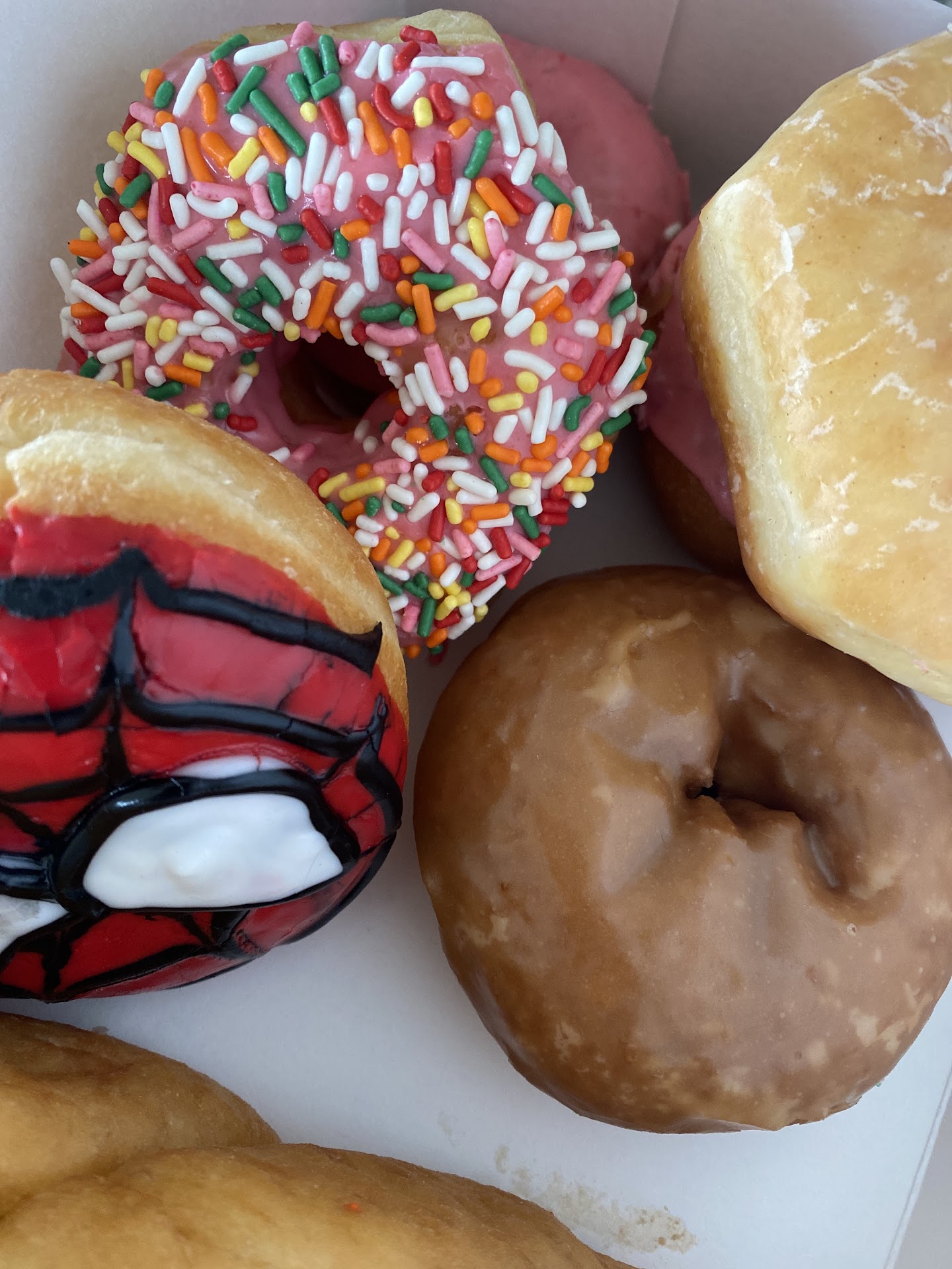 It’s mid October 2020. This morning was our first visit to the shop. We arrived a little before 7am on a Sunday, only one customer in front of us. It’s a good sign that somebody besides us was willing to show up early lol. We enjoyed browsing the specialty donuts, which featured a lot of Halloween themed goodies. They had donuts, kolaches, sausage rolls, and waffles? An array of stuff. We came in today for donuts only and got the blueberry, red velvet, buttermilk, and peanut top. Mostly notably, we snatched the Spider-Man specialty donut :) The owner threw in some donut holes and a red velvet donut, which was very nice of him. The holes were crispy on the outside, soft and fluffy in the middle. The blueberry one was my favorite, full of natural flavors with a soft muffin kind of texture (not too cakey). Simply a light delightful treat. I liked the buttermilk one too. Flavor was subtle without a sour after taste. I also enjoyed their coffee, assuming they serve Parks coffee—it says so on the sleeve. Great coffee for a reasonable price. No strange after taste. I would totally come back sometime on the weekend. This place is something worth waking...