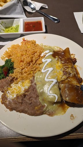 For my meal, I opted for an appetizer as my entrée, choosing the Green Chile Quesadilla on Vanessa's recommendation (Thank you again, Vanessa). The blend of chiles, mushrooms, and onions was a flavorful journey, although a bit more cheese would have been welcome to balance the filling. My husband, meanwhile, settled on the Fajita Trio - a combination of Angus beef, chicken, and barbecue shrimp. The fajitas were satisfyingly good. However, there was a slight textural oddity with the beef, possibly due to the cut or the thin slicing, that felt unusual but didn't detract from the overall enjoyment of the meal.