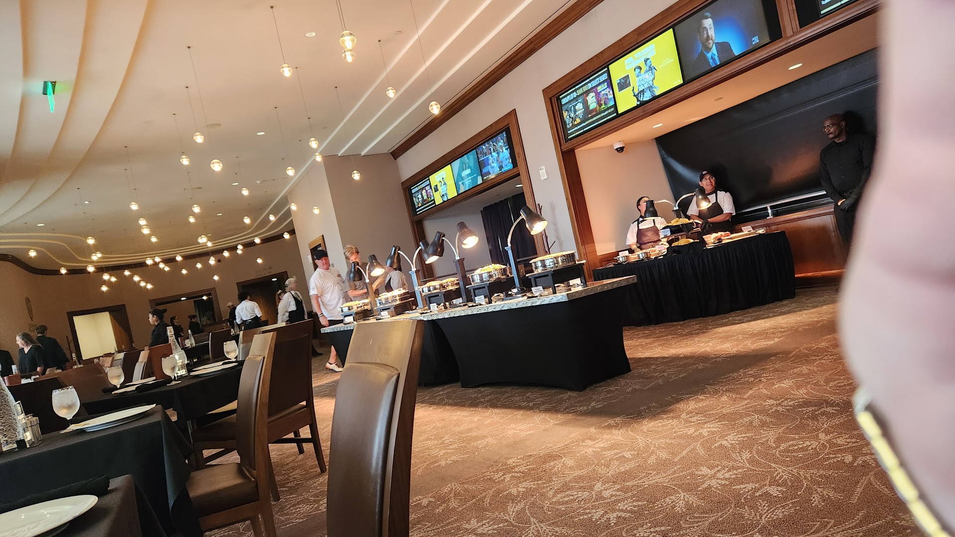 For this event they had a "Chef's Table" buffet that was open the entire session (2 sessions on Thursday, 1 on Saturday). They gave you a wristband to return. Before the 1st game (there are 2 games per session) they had breakfast/brunch food and then switched to a lunch menu. They also did this on Sunday. So we got two meals! Alcoholic beverages were extra of course, but there was a bloody mary bar for those who wanted to make their brunch cocktail a little "extra". Price on Thursday was a freakishly affordable $30! I don't know if they clued in to the affordability or what, but it was $48 on Sunday. We felt that both days were affordable for this type of buffet at this type of venue.