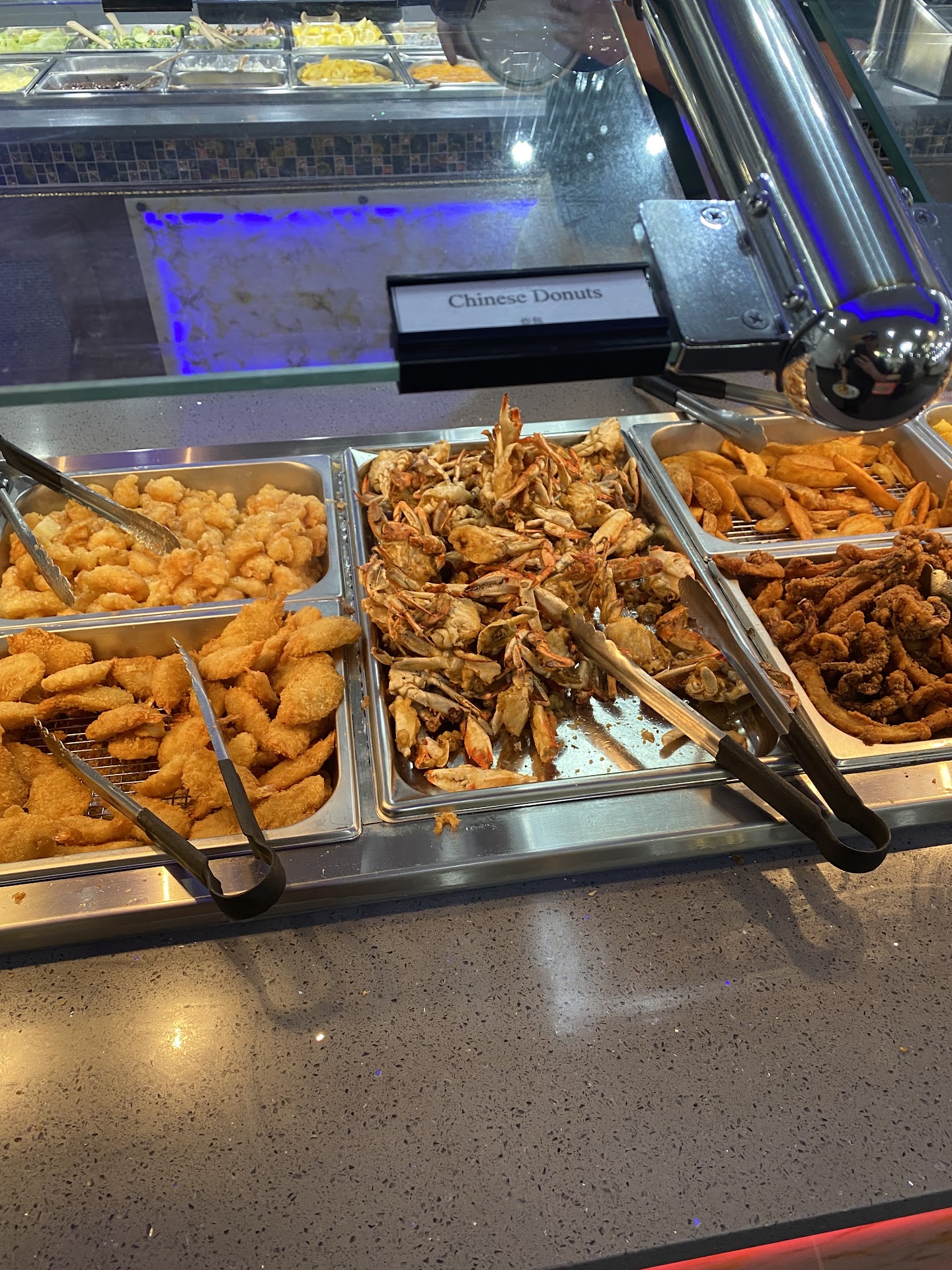 Update: food quality is still not good, and possibly worse. The sesame balls were overcooked, the sushi looked questionable, the cream cheese wontons are still good, the tapioca pudding tasted off as well as the cantaloupe, there was something that didn't look like boiled egg stuck on the boiled egg tongs. We went around 6, so not really a late dinner. My husband said the green beans were good this time around. I don't think...