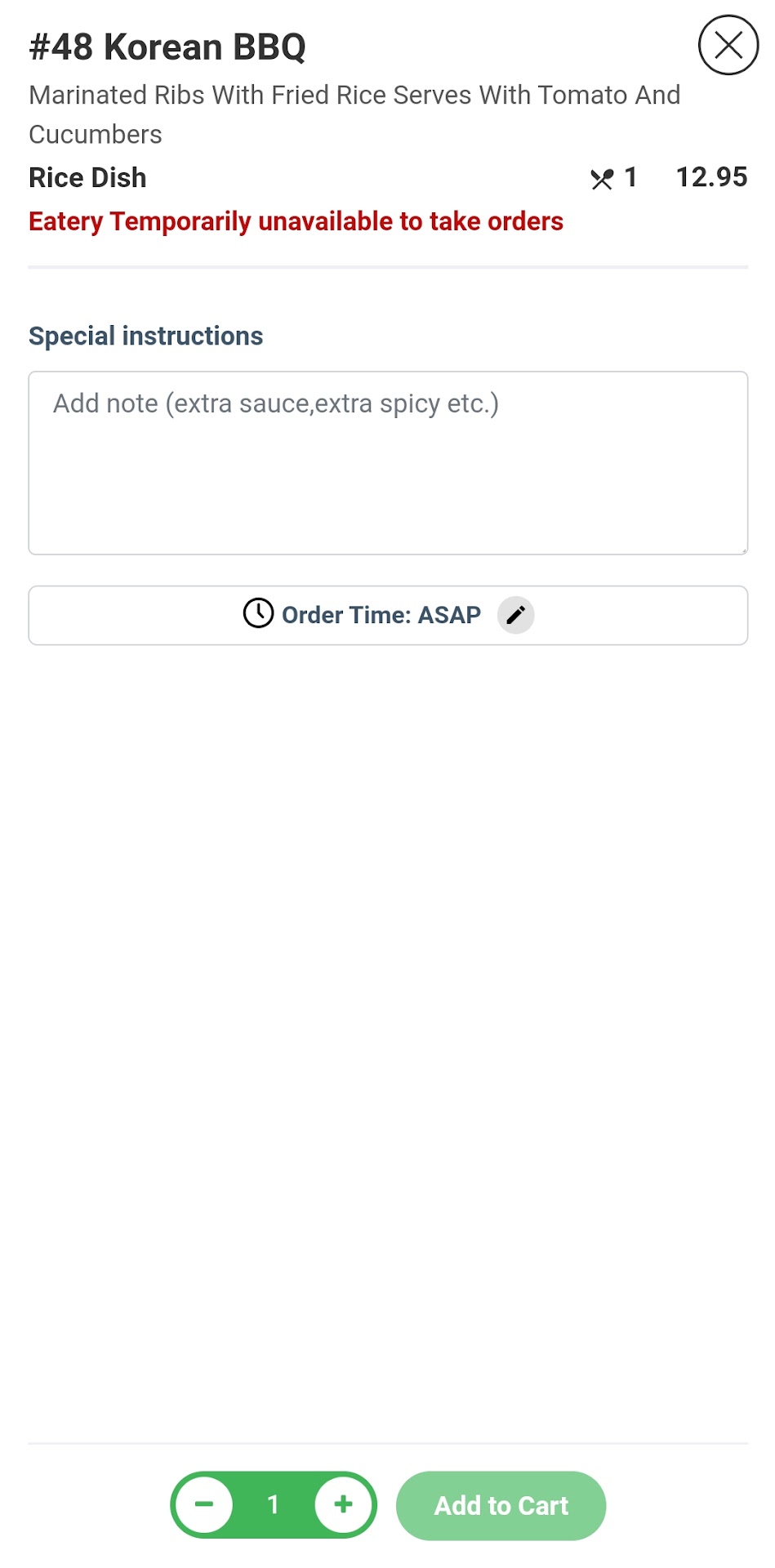 Read more*Edit in response to owner reply - While I appreciate the response, I would like to point out that your menu literally says the Korean BBQ comes with tomato and cucumber. So I don't appreciate them making it seem like I'm lying. I even attached a screenshot of their menu where it says this. In addition, whether your orange chicken dish actually has teriyaki or not, it did not taste like honey and orange at all. Not even close. It was not sweet, it was almost bitter. I usually love these small restaurants but unfortunately the quality was just not there. *