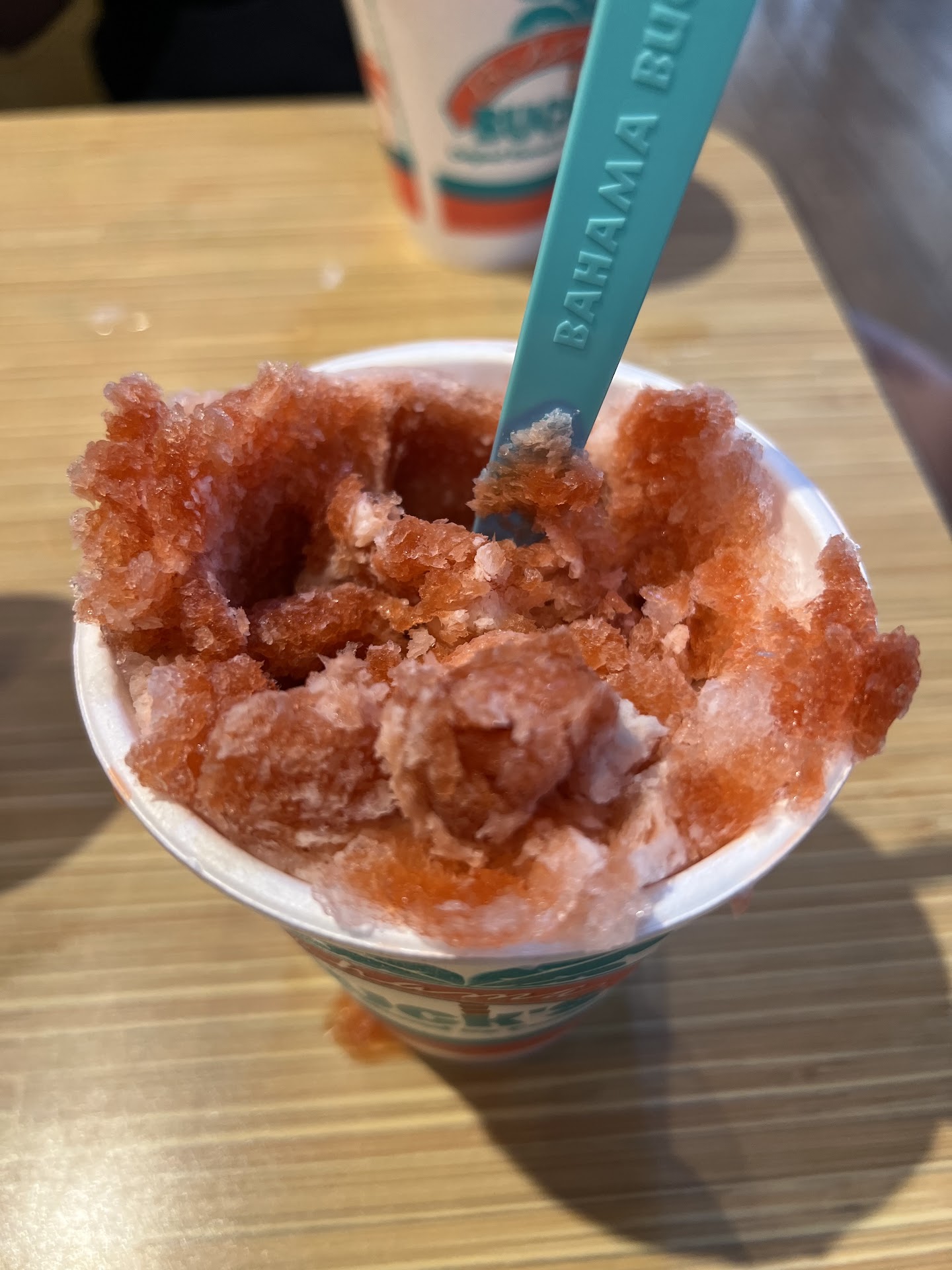 Read moreAs a west Texas girl I grew up on Bahama bucks so I was thrilled tonight when I realized there was one right down the street! Unfortunately the visit left much to be desired. First of all no greeting. We waited awhile and made eye contact multiple times with the three employees who were busy with closing up. It was 9:20 and not crazy busy. They managed to tell people bye but couldn't say hey I'll get to you in a second. When someone finally steps up to the register I said hiiii. Absolutely no response. My husband starts to order a strawberry freeze cake. "We're out of that. " Orders something else. We're out of that. Okay what are you out of so I can order something you have? "just that." Then attempts to order something else and again out. Multiple times my husband asked what they are out of so he can figure out what to order. After multiple vague answers of "just that" he gave up. I tried to order blue coconut and you guessed it. They were out. We settled on cotton candy for the kid (👍) As we're checking out the cashier laughs about being out of everything. Which would have saved everyone if we were told that from...