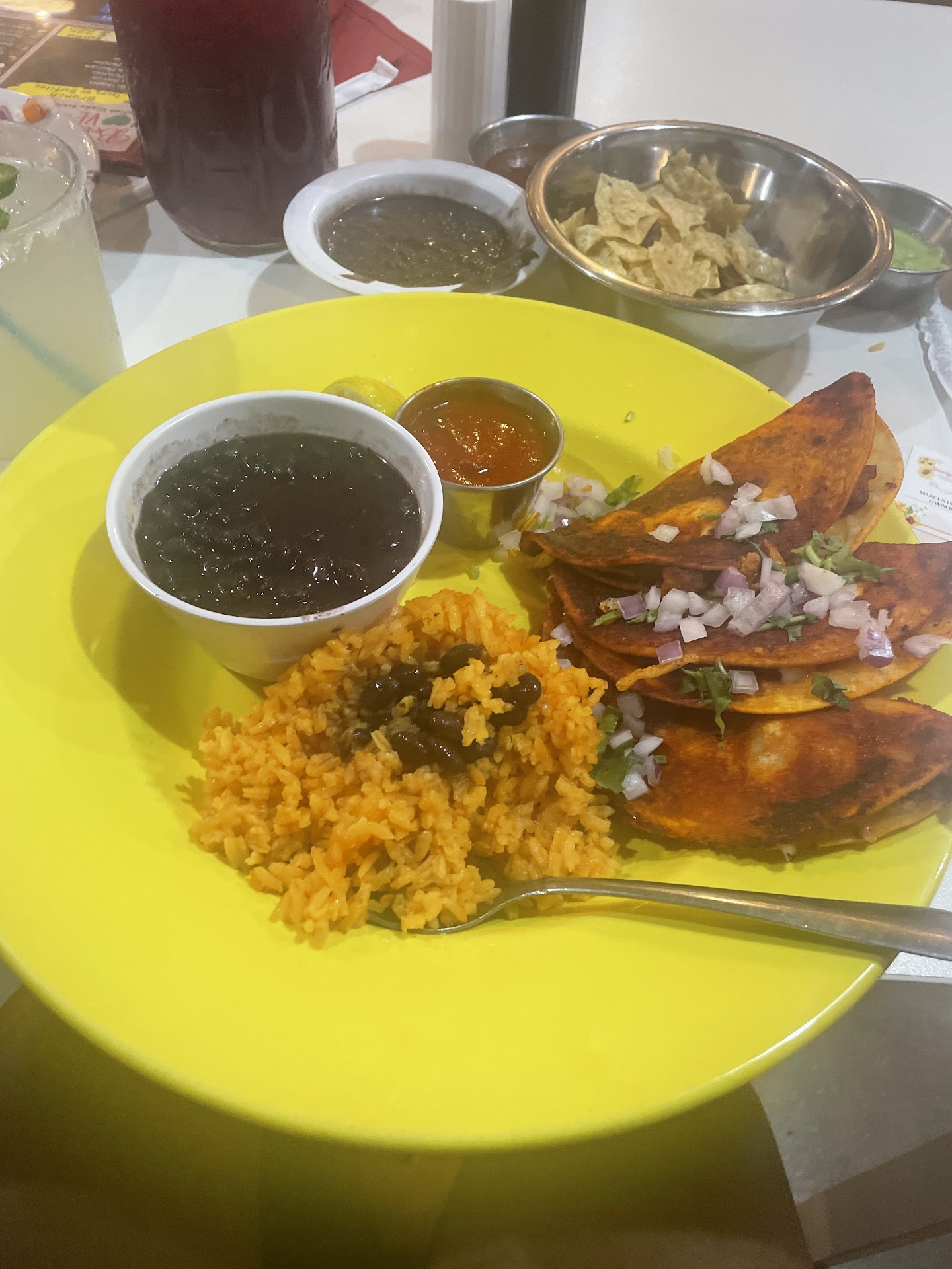 Chips + black bean dip + 2 killer salsas ā āāāāā