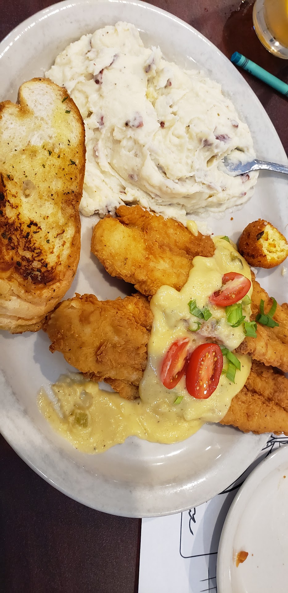Read moreWent here for my birthday and it was, without a doubt, the WORST food I've had since moving to FW. THE. ABSOLUTE. WORST. Ordered charbroiled oysters and had to send them back after only half the plate was actually charbroiled... Or even fully cooked. Sent them back and I got back a plate half charbroiled and half BURNT. I was worried about sending it back again so I kept my mouth shut the second time. The ones that aren't burnt were not bad. Then we got our main dishes: two kids meals, a lunch order of shrimp fettuccine, etouffee and jambalaya dinner, and a chicken sandwich dinner. To start with the positive... The kids were super happy with their corny dog and grilled cheese - that's all the good there was. The shrimp fettuccine - the shrimp was WAY overcooked to the point it didn't really resemble shrimp anymore. The pasta was also overcooked into almost mush. The sauce was so fishy, salty, under seasoned, and thick with cheap cheese that hours later a still can't get that taste out of my mouth. The etouffee with the substituted jambalaya tasted like something was starting to turn or maybe had be left out too long. I think it was the tomato paste that had been lumped in. We sent it back because it was completely inedible and ordered fried shrimp... It came with fries that were not bad and green beans that were barely recognizable and tasted worse than they looked. The last meal was a chicken sandwich - the chicken was under seasoned and drowning in melted cheese. My daughter was hungry and tried to eat the whole thing... Until she ran into a big tendon making the rest of the mediocre sandwich inedible. We were pleased with the service from our waiter so we were sure to tip, but he was the only one there that wasn't mouthy or rude. The female in the kitchen... I heard you running your mouth and I didn't appreciate that at all. The restaurant itself seems to be in a slight disrepair. Tables need to be fixed, the walls are cracked and plaster is missing in large...