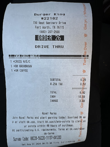 Ā Ā Ā Read moreLet me start with... I love Burger King.. my absolute favorite burger anywhere....but... This one on Seminary .. idk if they just don't care or have no idea which burger is which. Or the difference between French fries and onion rings. They definitely do not know how to do basic math. Went through the drive thru tonight.. grabbing a late dinner for my sister and I. Ordered both meals exactly the same, not because we like the same thing...but in hopes they could get it right... I was wrong... My two whopper jrs came out as double cheeseburgers, my two onion rings turned into French fries.. he acted as if I was lying when I asked for the 2 med Dr peppers I ordered And to top it off. The change I owed was .07 cents.. I gave him .12 and blew his mind . He gave me back the .02 cents stating that he didn't need them. But then kept my .03 cents. I usually try to only give decent reviews, but this is every time I go to this one. when will I learn that the extra couple of miles to any other Burger King would be well...