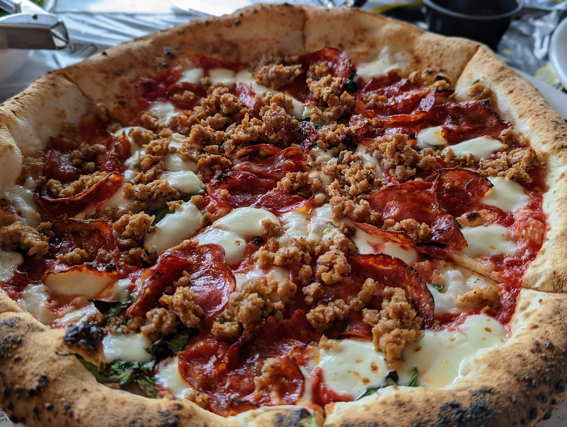 A few minutes later, the couple who had say down third got their pizza. It was several more minutes before ours came out. So about the pizza. I like thin crust pizza because I like it a little crispy. Their crust is thin but not crispy. The toppings though were really good. The sauce, cheese, sausage and peppers on the Cane Rosso were all delicious.