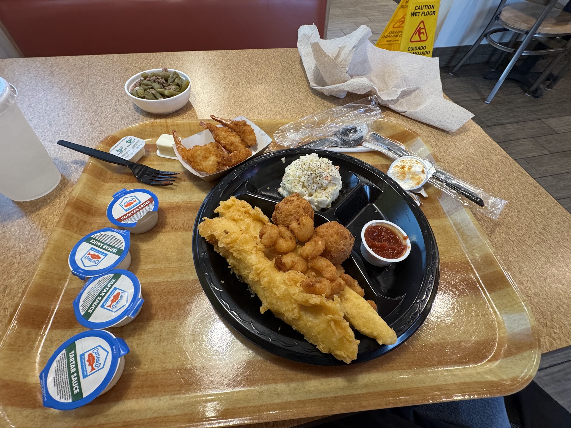 The fries, corn, hush puppies, and green beans were basically the only thing that were fresh and up to par.