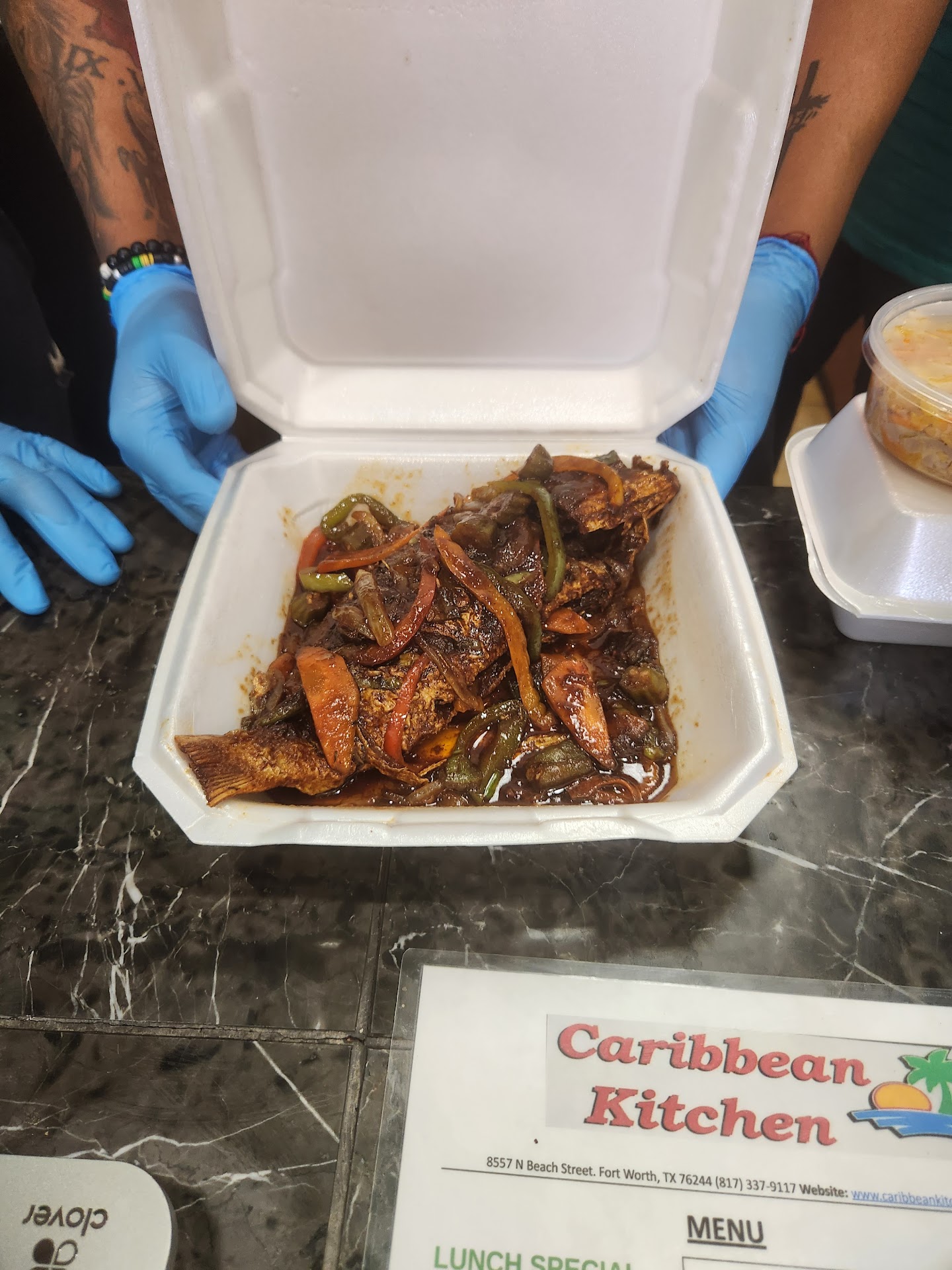 Read moreSo look..... you ever had a moment where you was so excited about something and said, "so look".....we were driving on beach when my wife did what's Caribbean Kitchen. I stopped looked puzzled and said I don't know, you wanna try it out. She being picky said no maybe another time but I felt a quickening in my spirit. I had to get churchy real quick. And something said look them up, so I went to Google and saw the many GREAT reviews and I stopped in the middle of the parking lot and told my wife we're going back there. So when we got in the building the people there was so friendly and loving, I knew it was going to be a great place to sit down. But sitting down was my downfall because after eating the wonderful, tasty and awesomely goodness spoon filled that I had mad me not want to leave. I had the shrimp curry with rice and peas and cabbage. The gravy was just right just the right kick to let you know it was curry. My wife had the brown stew fish that was a red snapper. She rarely finishes her food but honestly made a happy plate. I employ you I would even dare you that if you want some good homestyle Jamaican food, then go try Caribbean Kitchen on Beach St and Tarrant pkwy in Fort Worth Texas. I'll probably be the one sleep...