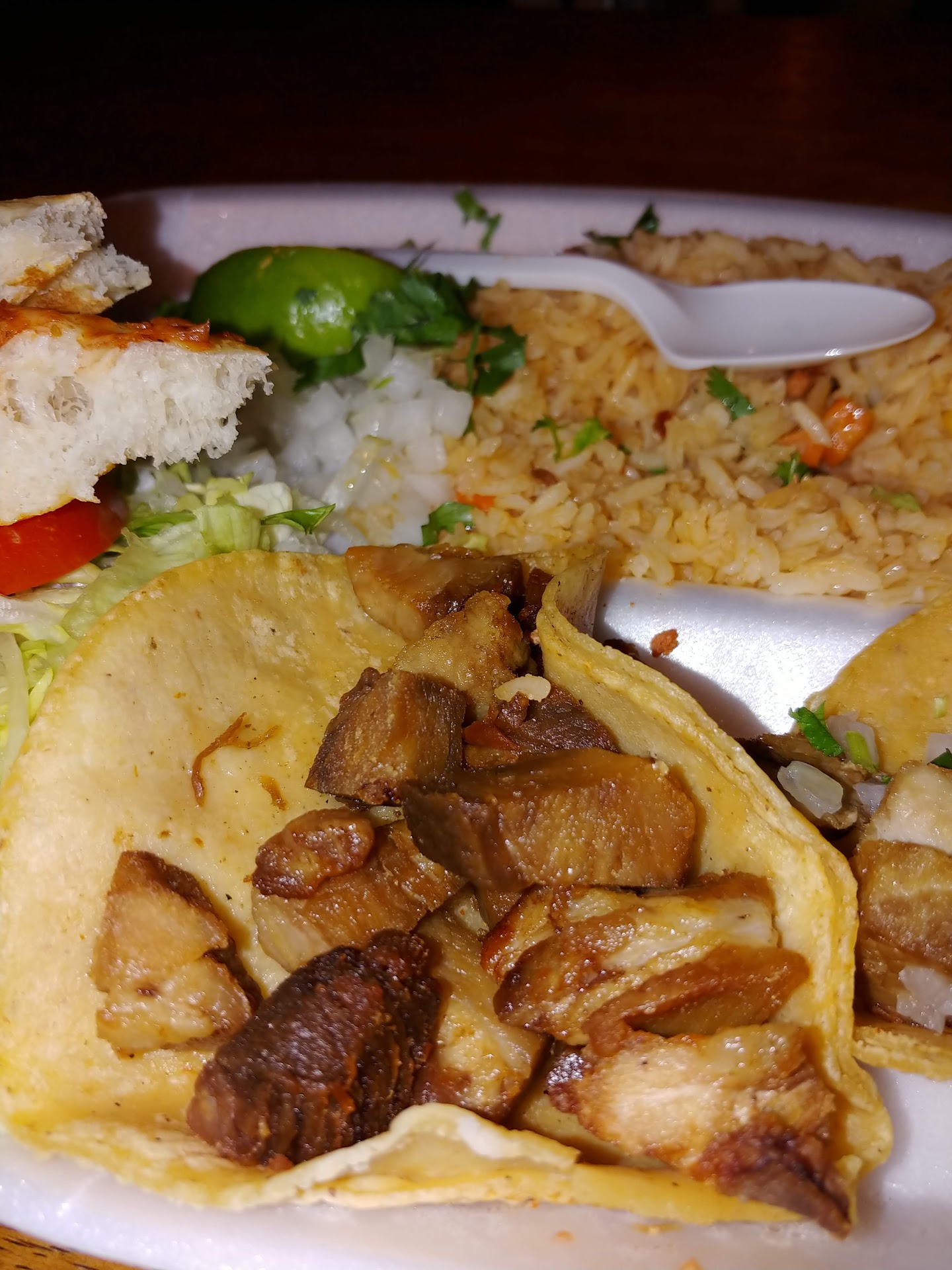 My wife got the same 3 taco plate but she got carnitas. They were terrible. They were cut into small hard dry cubes and seemed microwaved, had a taste of being refrigerated. Will also never have carnitas again.